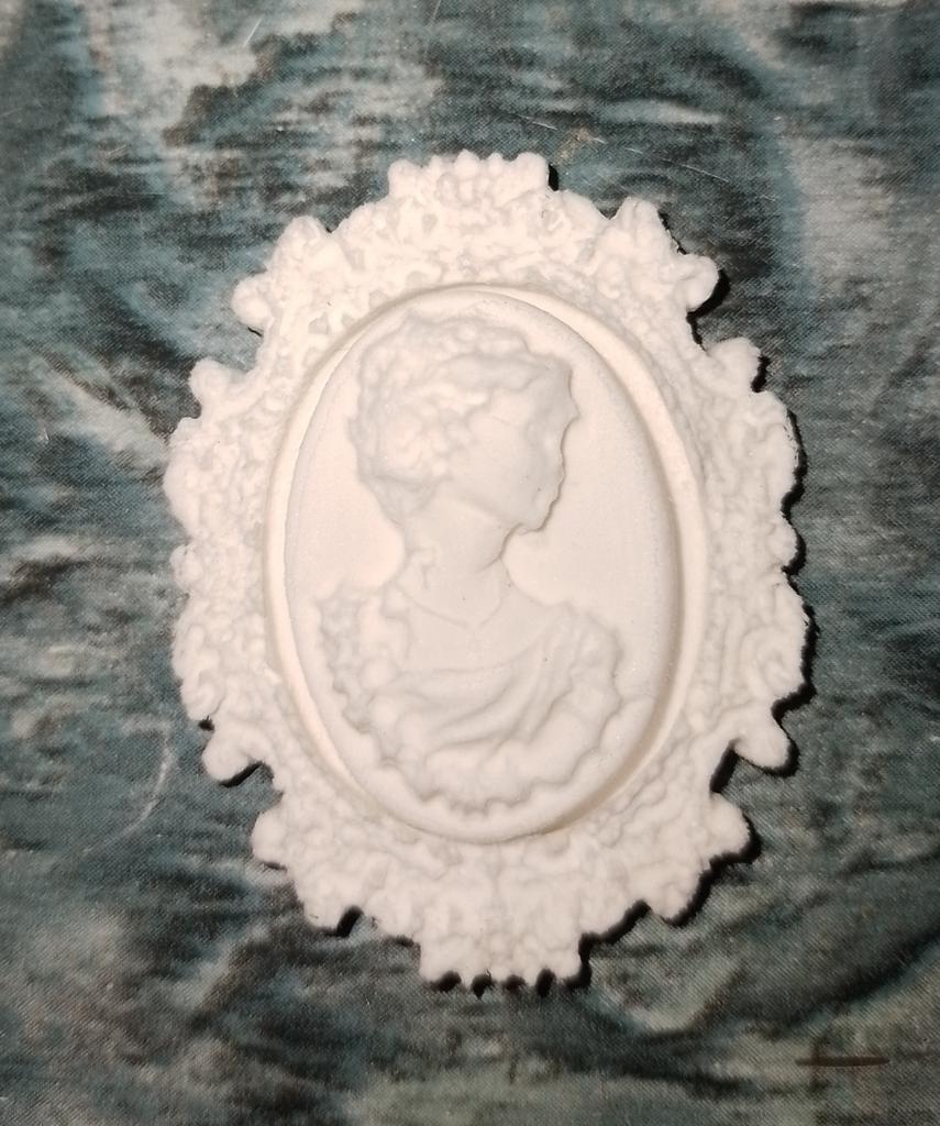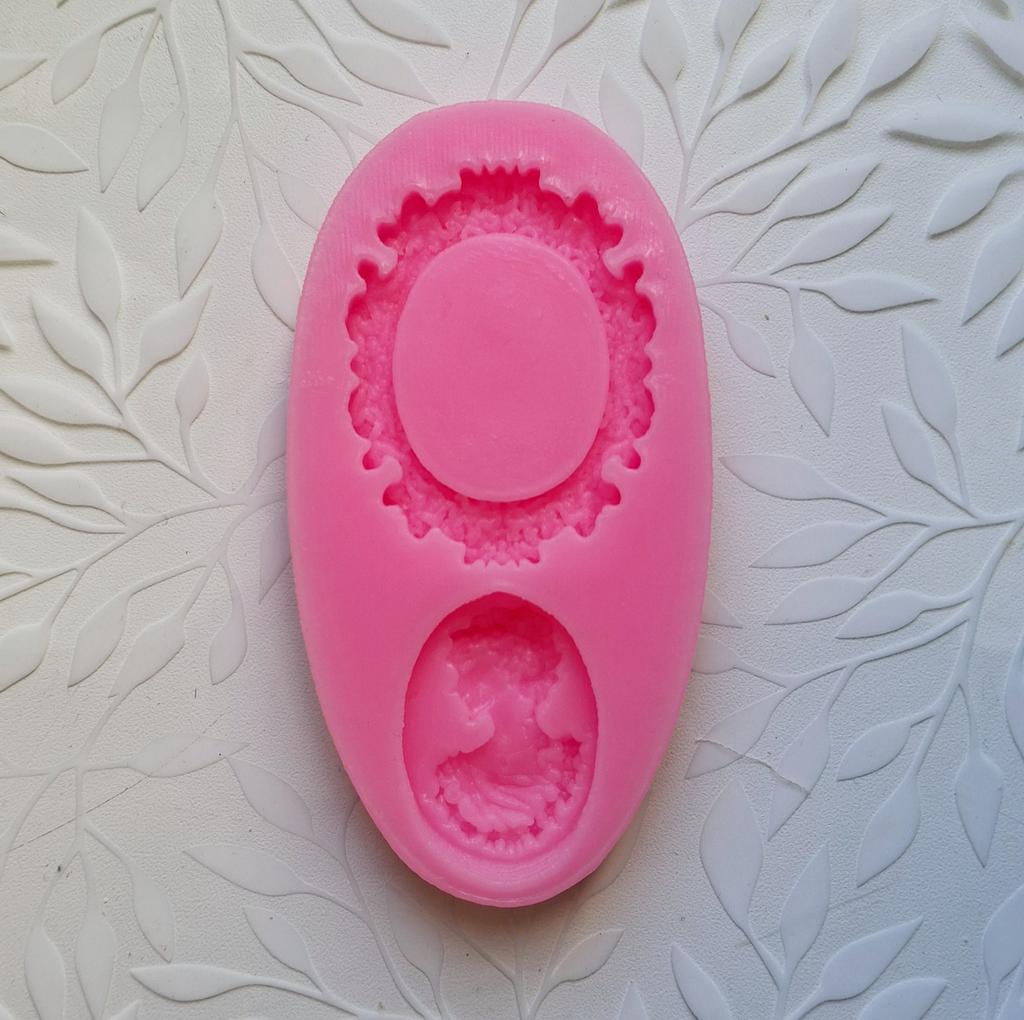 Форма матовая, но это не проблема Нижняя и верхняя часть не подходят друг к другу ‼️‼️ Нижний овал намного длинее и края сделаны не аккуратно из-за этого невозможно вставить в рамку кабашон. Сама девушка со странным длинным подбородком, который плохо отпечатывается В общем не рекомендую
