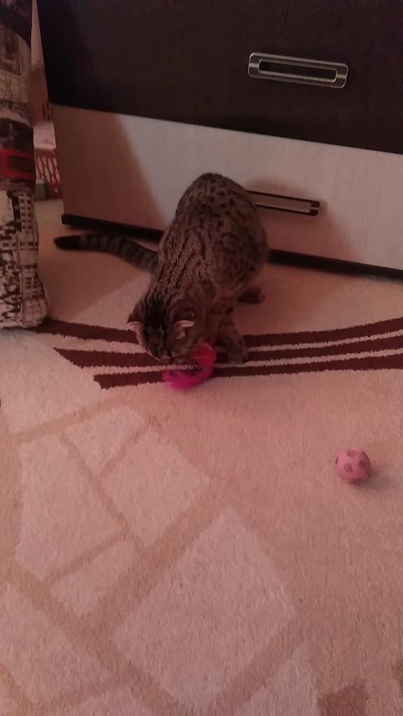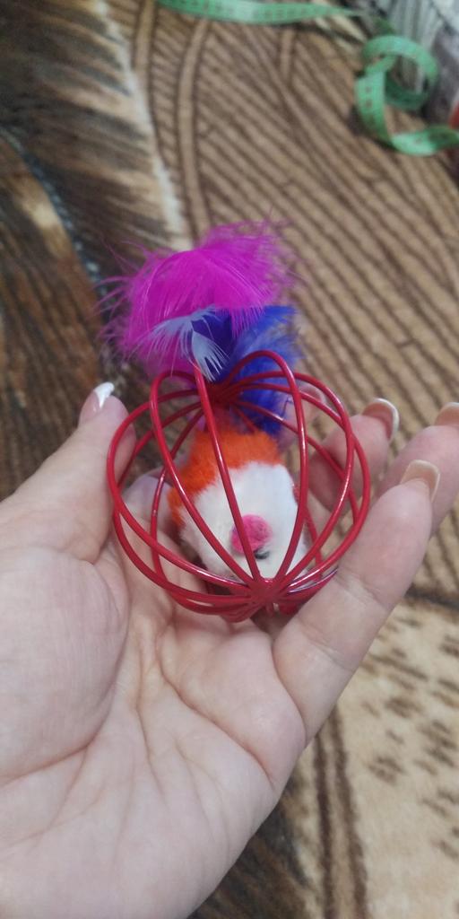 🐈 Шипче рекомендует. 🙋Здравствуйте! Мой кот Шипче получил новую игрушку. Спасибо Joom!📦 😼Сначала 🐈 отнёсся к игрушке весьма равнодушно. Обнюхал и пошел по своим важнейшим делам. 🤔Я уже было расстроилась, но решила оставить шарик с мышкой лежать на полу и посмотреть, что будет. 🤩И была права! 😻Котище очень скоро оценил новую забаву. 💯Игрушка полностью соответствует описанию и фото. 🐀🌈Мышь с ярким хвостом из перьев свободно болтается внутри круглой клетки. 🔥Отлично катается, весело гремит. Клетка легко цепляется когтями, а хвост отлично хрустит на кошачьих зубах ))). 📦Посылка шла к нам с 🐈 месяц. Упакована стандартно. В пути не пострадала. 🙏Мы с Шипче говорим продавцу, большое спасибо! 😻Кот Шипче рекомендует!