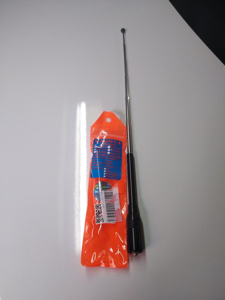 Разложенная длина 34-35 см. Принимает, на передачу проверить не могу. NB: описание честное, но меня немного ввело в заблуждение - указан разъём НА антенне, а не ДЛЯ антенны.