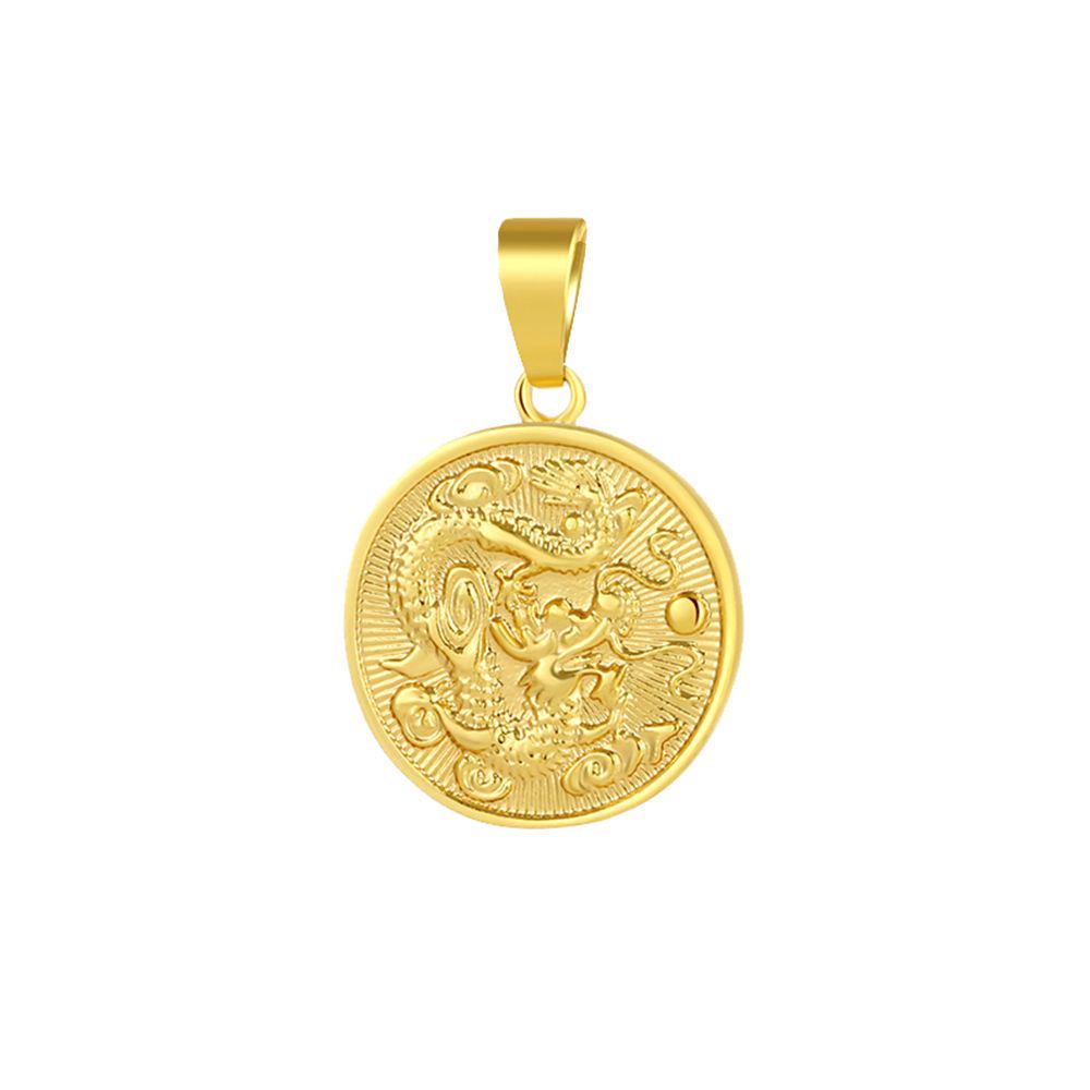 Мужская цепочка золотого цвета со зодиаком, круглые китайские ювелирные изделия, золотой кулон, ожерелье с драконом