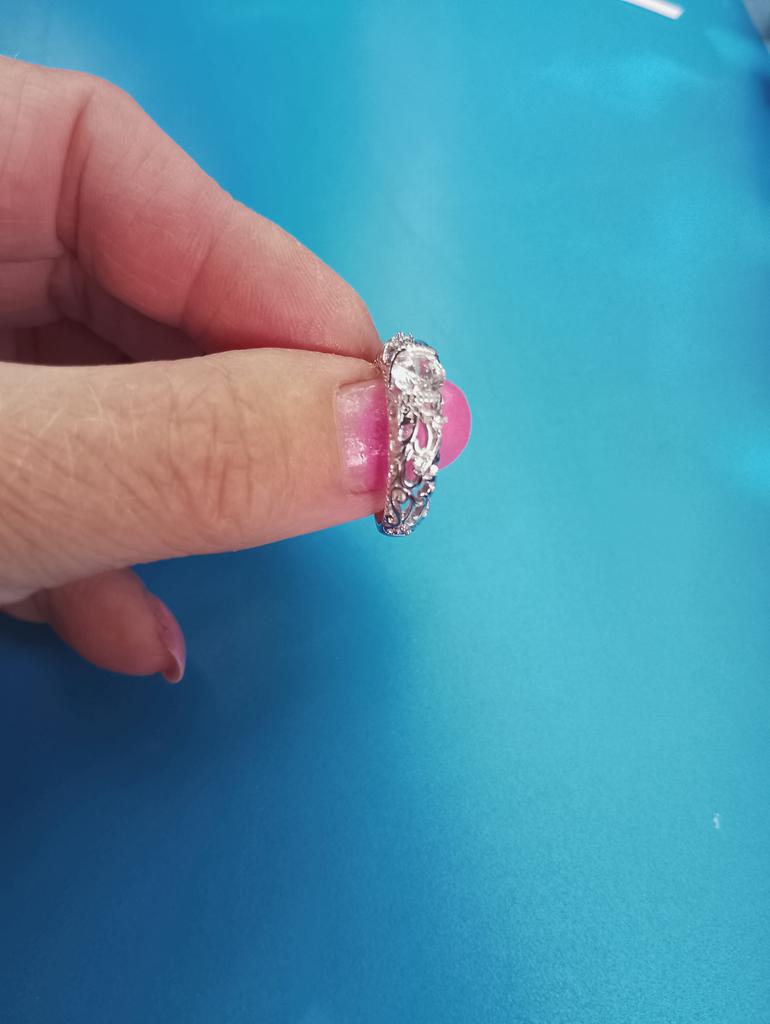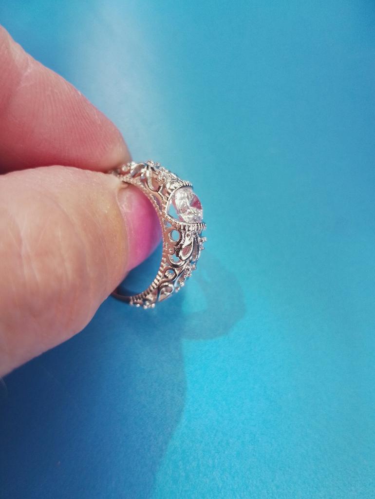 Колечко 💍. Ажурное❄️💎❄️. Выполнено очень качественно 👍! Большой камушек переливается, прям как настоящий бриллиант 💎 😁! По боковым частям есть по три маСеньких стразика. (Самые нижние , я считаю, лишние, т.к. царапают соседние пальчики... 😏) На внутренней поверхности стоят циферки "925", но что они за собой несут, время покажет ☺. Размер #6 идёт на 16й размер пальчика. Очень очень понравилось🤗, очень очень красивое!💫❄️💎