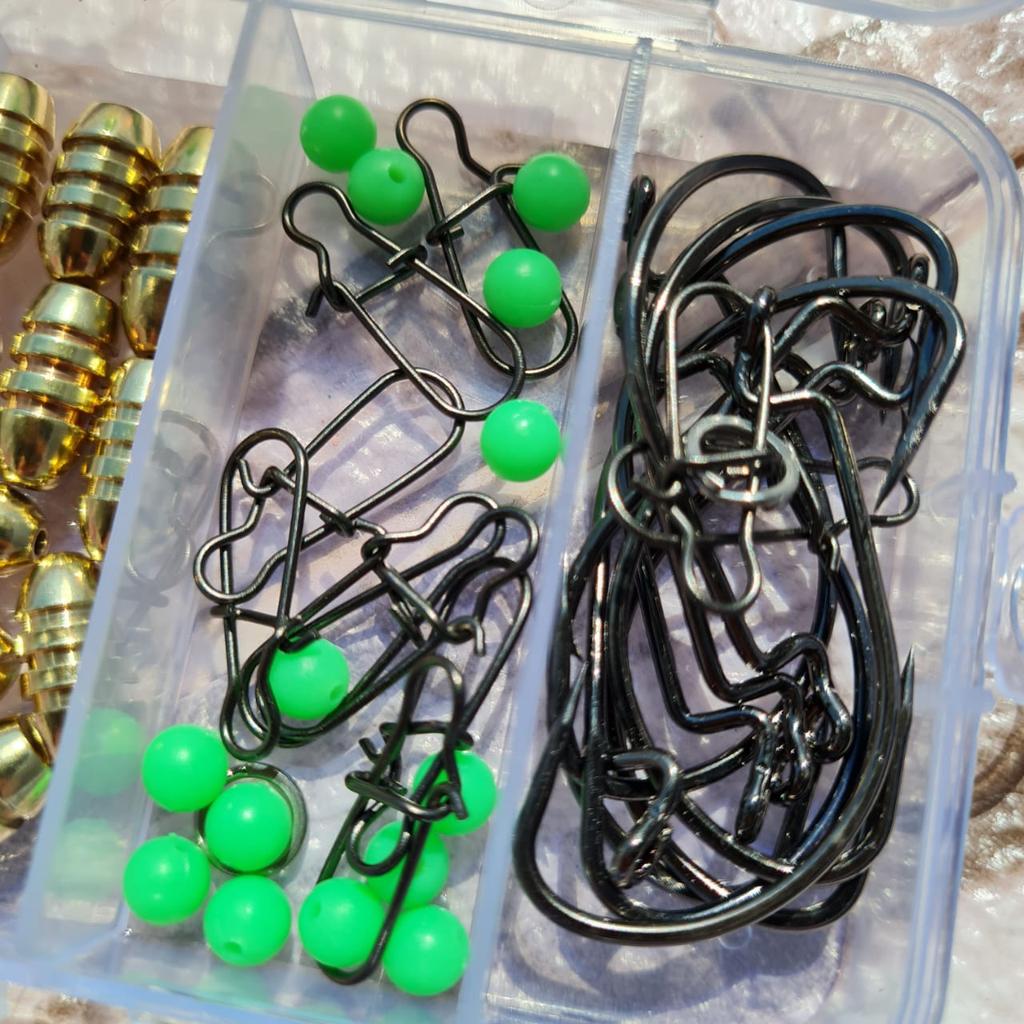 Набор грузиков и крючков для рыбалки В комплекте очень много всего и это видно на фотографии. Есть карабинчики, грузики, пластиковые шарики, и большие крючки. Я доволен все как и хотел к покупке товара советую. Доставка в Украину месяц