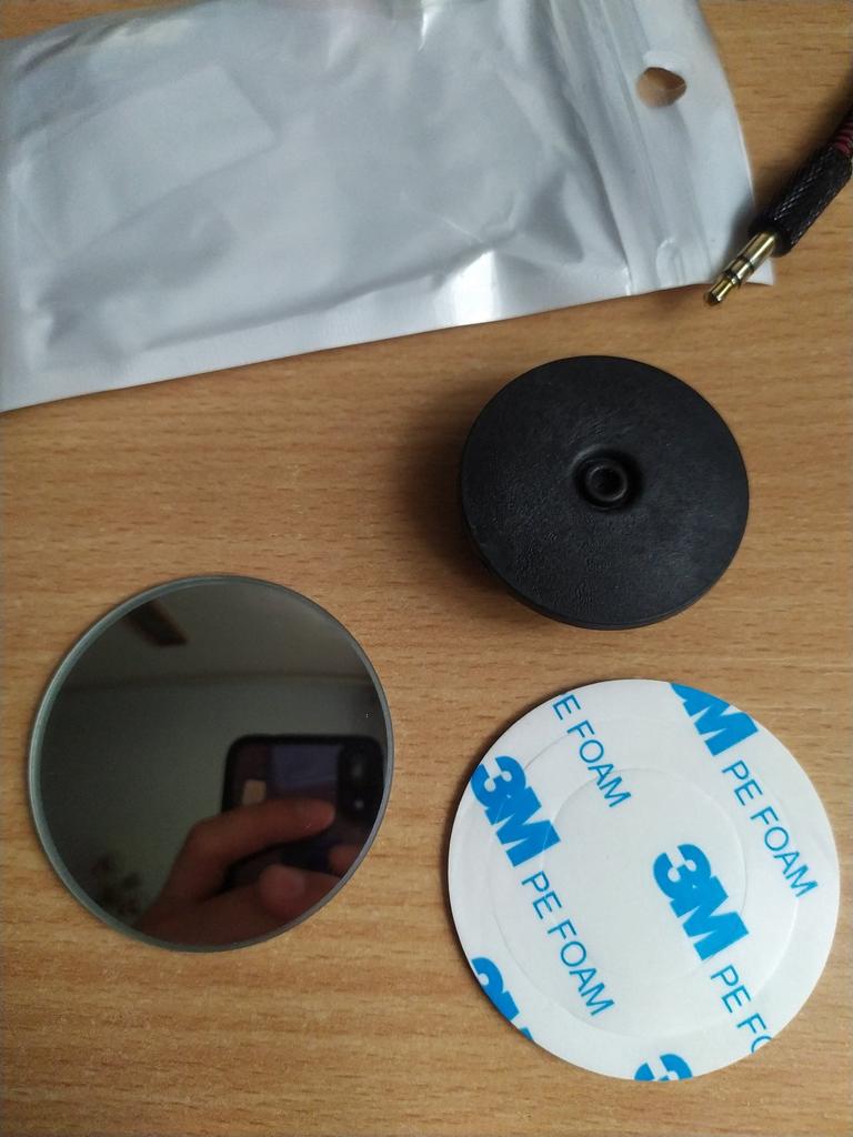 Зеркальце без корпуса. Крепится с помощью двухстороннего скотча. В случае, если на него будет долго светить солнце, то скорей всего отклеится. А так выглядит симпатично. Продавца рекомендую. А на счёт зеркала смотрите сами. Я описал всё правдиво.