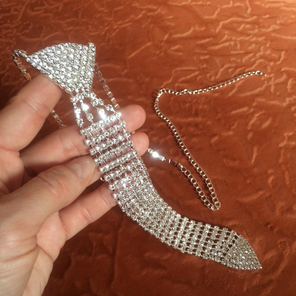 Действительно, роскошный галстук-ожерелье! И для декольте хорошо, и для строгого черного платья, есть такое с глухим воротом, колье очень его украшает, уже смотрится не как просто маленькое чёрное платье, а как вечерняя вещь. Упакован был надёжно, дошел сравнительно быстро. Все стразы на месте.