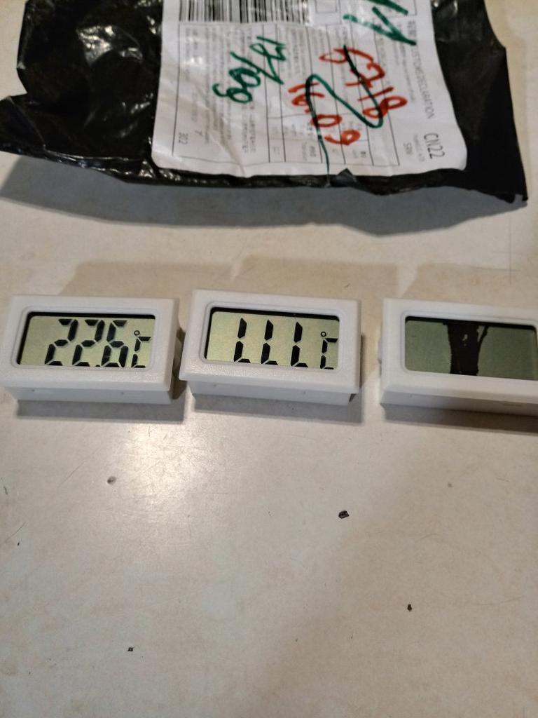 Заказ пришел супербыстро. Упаковано, мягко говоря, плоховато, просто в пакет. Но, термометры целые. И показывают одинаково. Значит живучие штучки. Показания на градус отличаются от уже имеющихся термометров. Пока писал, разница уменьшилась до 0.5 градуса. Продавцу благодарность. За сверхбыструю доставку и очень живучие приборы.