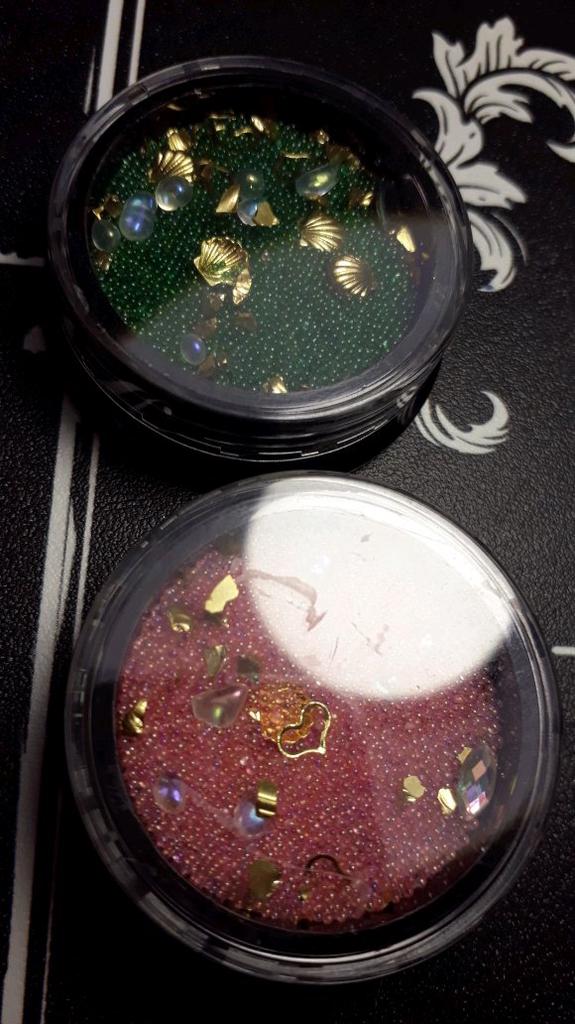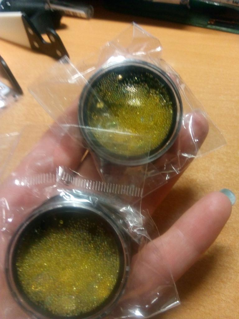 Товар пришел быстро. Заказ 04.08 11. 08 был в Москве, а получила 29.09. Санкт-Петербург. Опустили в почтовый ящик. Фото товара не соответствует тому что я получила. В моем наборе оказались баночки с медной, золотой, серебряной и разноцветной фольгой. Меня это вполне устраивает. Баночки маленькие, малюсенькие я бы даже сказала, но их по три штуки каждого вида. Итого 12 штук в наборе. Все аккуратно упаковано,ничего не сломано не просыпается. В деле не пробовала.