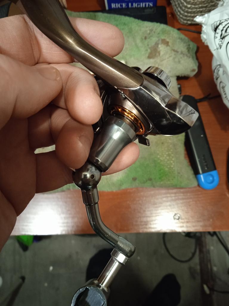 Ручка от другой катушки, это видно по цвету. На правую сторону переставить ручку не удалось, так как не закручивается до конца, а мне нужно именно, чтоб она была под правую руку