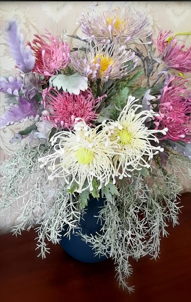 Заказала цветы для создания композиции… пока остальные цветы не приехали, разложила две ветки цинерарии выпрямляться. Качество понравилось!!! Никаких поломок, отсутствия веток не обнаружила. Все соответствует описанию и картинке! На данном этапе моя задумка воплощается хорошо!!! Спасибо Джум!!!