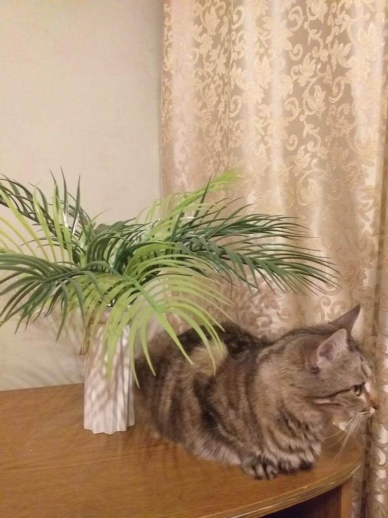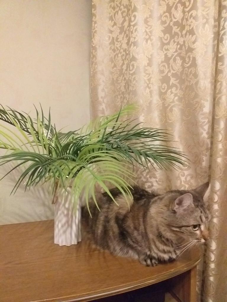 Хорошая пальмочка🌴...Мне нравится. Пуне тоже😻🏝 9 веток, из них 3 - светлые, салатовые👍 Можно и в горшок ее, но у меня нету, поэтому пока в вазочку поставила😉