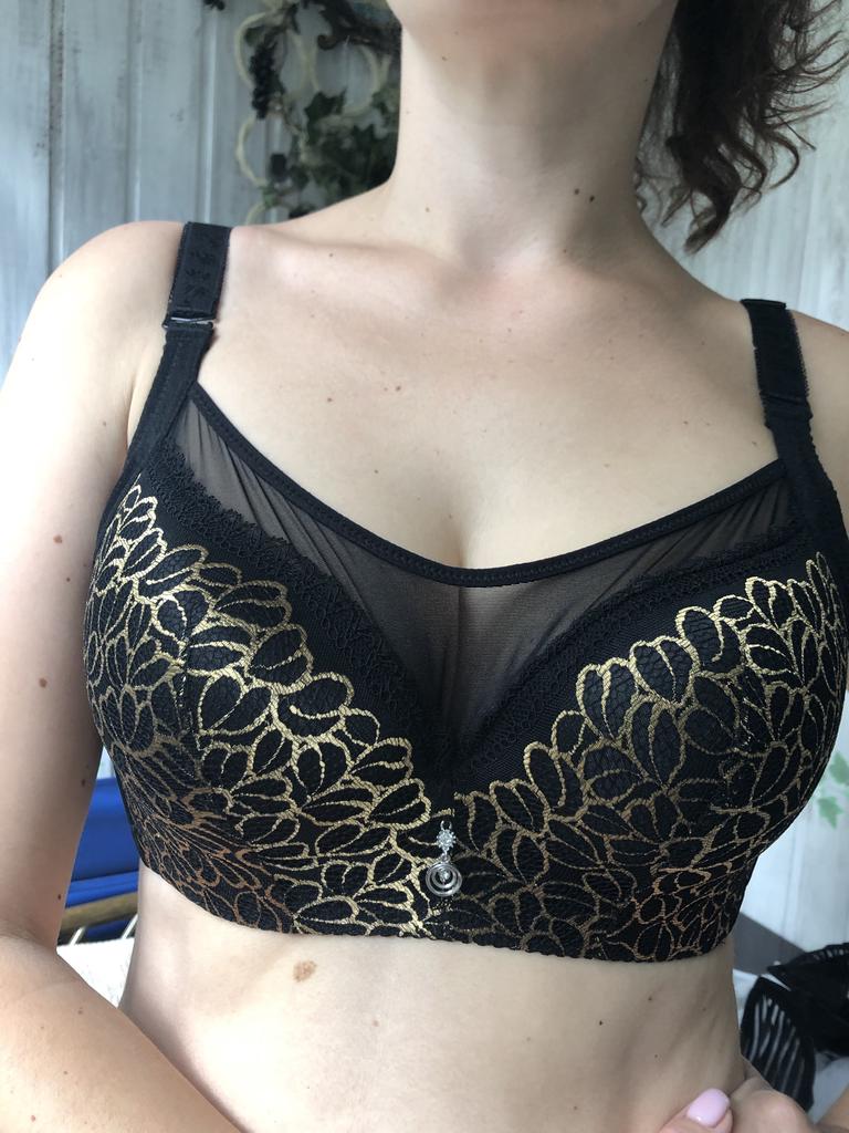 В целом бюстгальтер хороший, но я сняла звезду из-за того, что сеточка оказалась не такая широкая, как на фото продавца. Я планировала носить его как прозрачный топ с большими декольте, но моя идея застряла. Как видите по фото я довольно-таки изящная женщина, Но грудь у меня большая. Продавец положил лишние крючки, но мне они за ненадобностью, так как застегнула на последние крючки и ещё есть свобода в обхвате, придётся что-нибудь придумать. На самом деле это третий бюстгальтер, заказанный мною в Китае. На этом ставлю жирную точку, ВОТ НЕ УМЕЮТ КИТАЙЦЫ ДЕЛАТЬ ЧАШКИ ДЛЯ БОЛЬШОЙ И ШИРОКОЙ ГРУДИ, НО ИЗЯЩНОЙ ЖЕНЩИНЫ.... Они считают если берёшь самый последний номер (в моём случае - я именно чашку выбираю большую),они считают, что непременно и обхват должен быть очень большой...... Фото более-менее приличные, хотя есть свобода под мышками, но не критично, носить буду, так-как с водолазкой (последнее фото) грудь смотрится очень даже аккуратно. Я рекомендую это товар и этого продавца, всё отслеживалось и пришло очень быстро-за 2 недели до Санкт-Петербурга. Всем удачных покупок!