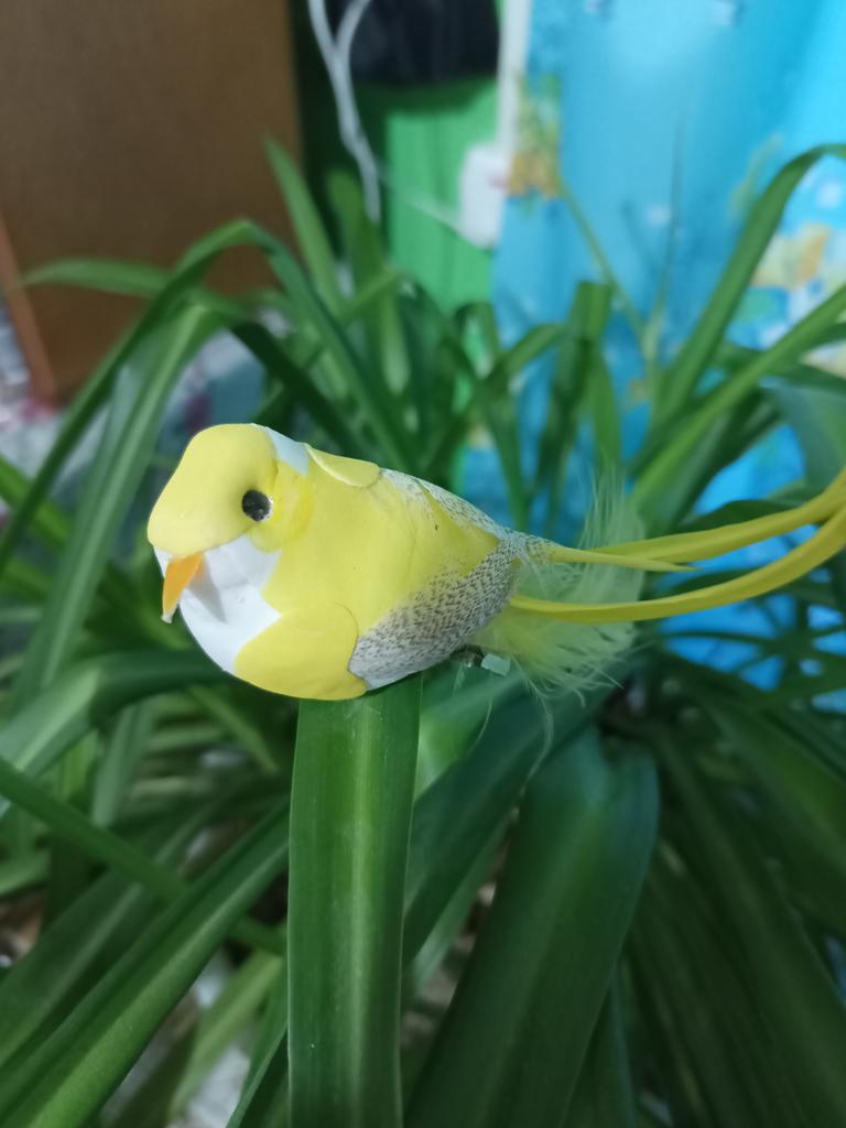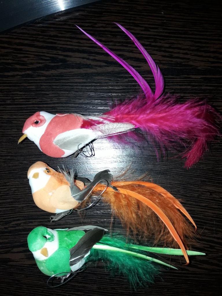 Заказала сразу три птички.На втором фото видно у зеленой короткий хвост,так как перо отломано. не знаю когда отправляли не видели или подумали что одну можно и такую положить. В целом качество на 3,много мелких косяков. Но на фото смотрятся хорошо. и на цветах если не присматриваться то более менее. А так конечно в магазине за 86 рублей не купила бы. тем более с браком. У меня была когда то такая птичка купленная в фикс прайсе за 30 рублей так там качество было супер. Я почитала хвалебные отзывы вот и купила😊
