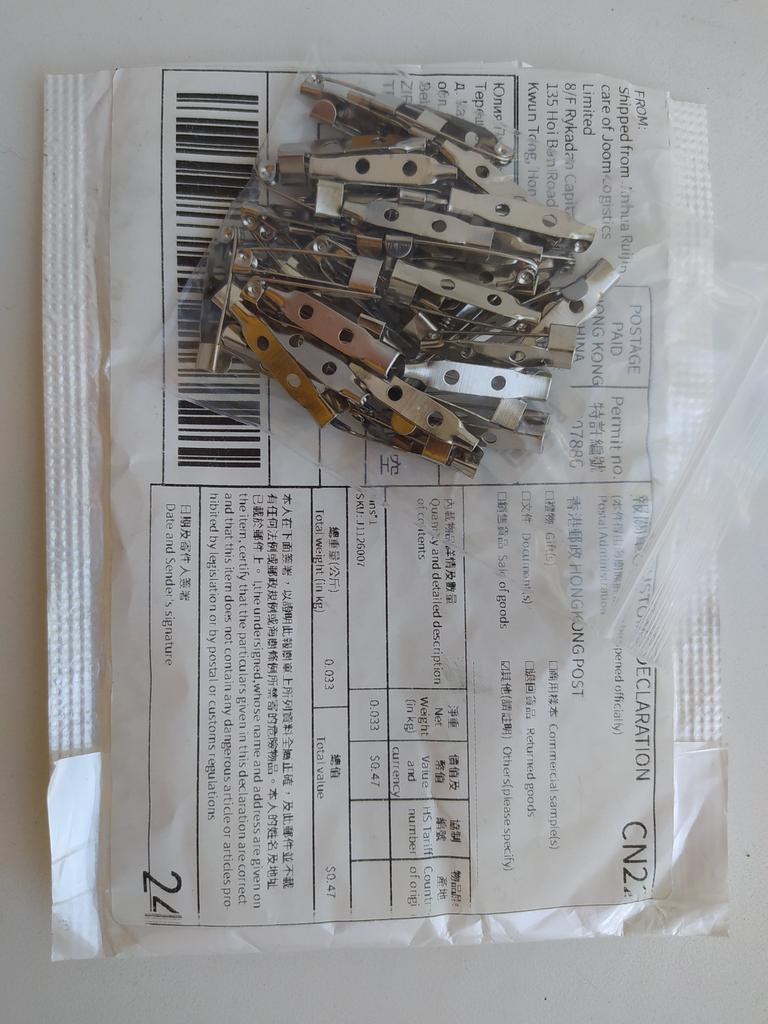 Основы для брошек пришли за чуть меньше месяца в Беларусь. Упакованы были хорошо, ни одна основа не пострадала. Нет изогнутых, кривых. Все одинаковые, с острой иголочкой, нет обломанных краёв. Это очень порадовало. В магазинах обычных и то обломанные. За такую ценую вообще шикарная вещь. Даром можно сказать. Очень рекомендую продавца и товар. Сама ещё 100 раз закажу, действительно понравилось всё 🤗 Спасибо большое продавцу ❤️