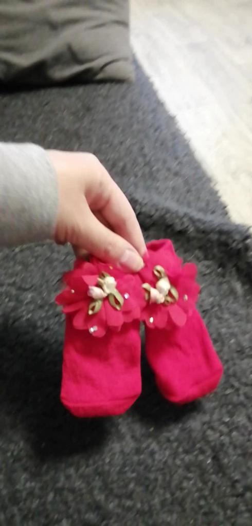 Очень красивые носочки.Заказ шёл меньше месяца в Польшу. На 9 месяцев и 10 см ножки подошёл отлично.Носочки хорошо тянутся, потому подойдут как для самых маленьких, так и деток постарше