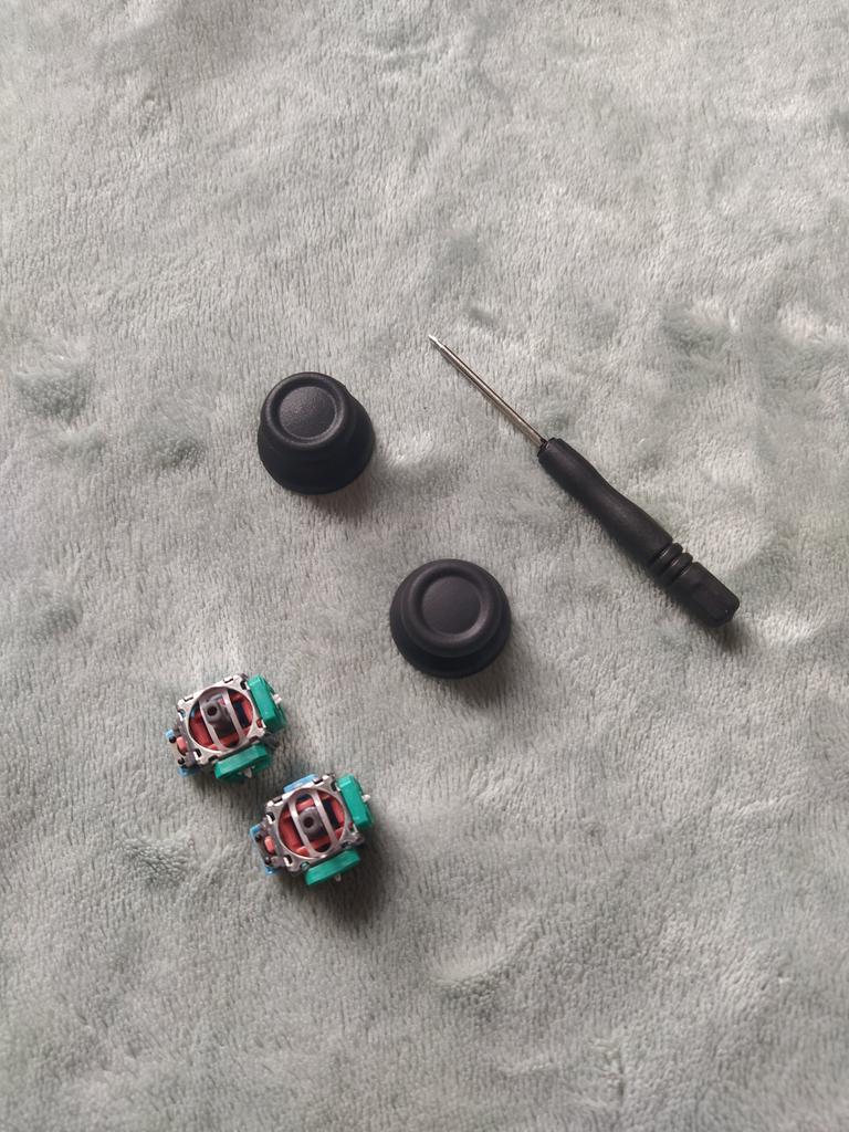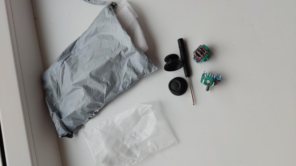 По виду все целое, в комплекте ещё и отвёртка мелкая. Стики слегка обрезиненные, по размеру очень похоже на оригинальные. Маркировку сфотографировал, может кому понадобиться. Сами аналоги в лёгкой смазке.
