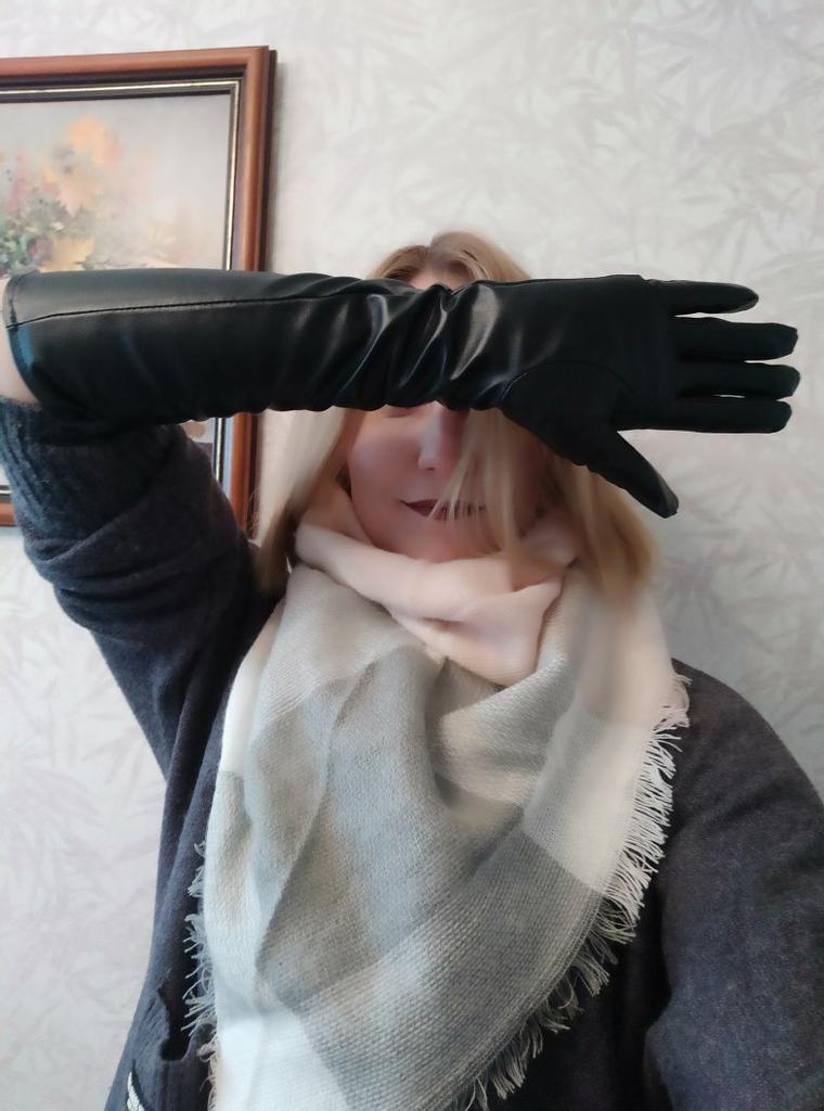Покупала черные перчатки 03.02.2022 г. за 327,00 ₽. В Иркутск приехали 14.03.2022 г. Перчатки черные длиной 50 см. из очень тонкой экокожи. В первый раз не смогла их надеть во всю длину - очень узкие. Но потом приспособилась (надевать их надо как чулки - закатав раструб) да и в ширину они чуть-чуть раздались. На фото видно, что поверху даже есть небольшой запас. При покупке учтите, что они практически не тянутся, больше 3 мм они Вам не дадут. Параметры перчаток: Охват ладони 15,5 см Охват запястья 17 см Охват у локтя 28 см Брала их для того, чтобы носить с объемными блузонами с короткими рукавами в качестве верхней одежды. Не уверена, что это получится - уж очень тонкий материал, может не выдержать нагрузок в виде сумки или поручней в транспорте. В качестве элемента костюма на вечеринках или для косплея подойдут точно. Вещь качественная. Сшиты очень аккуратно. К покупке рекомендую.