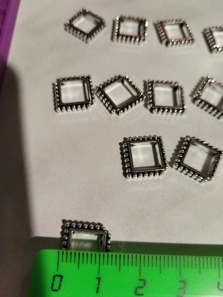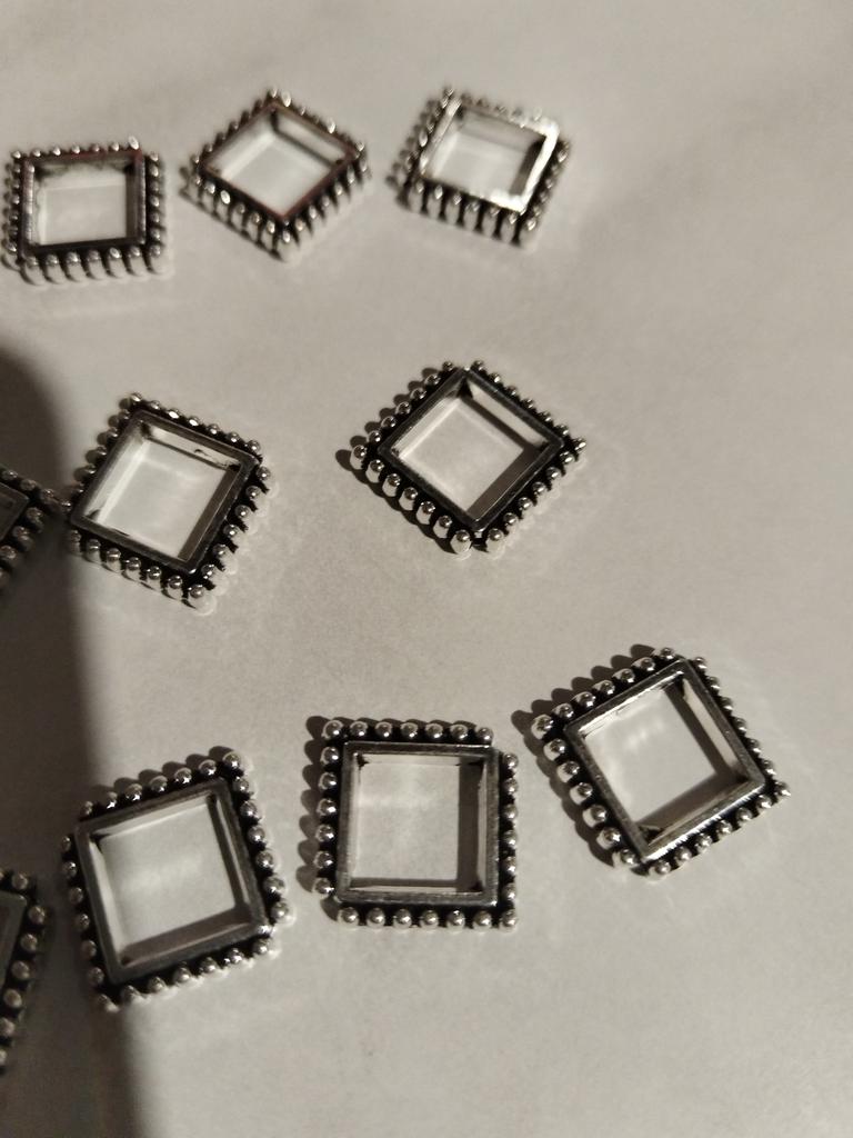 Рамки металлические. Рисунок двусторонний, если рамка перевернется, то рисунок не нарушится. На фото в рамках бусины из натурального камня 6мм и 8мм. Бусина 8мм в рамку не входит. Бусин 7мм у меня нет. Но вошла бусина стеклянная рондель 6*8мм. Продавца рекомендую. Благодарю Джум за доставку.