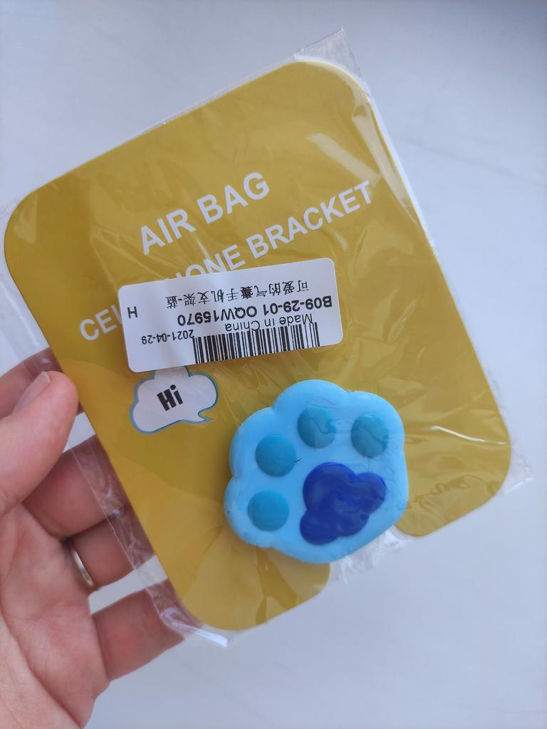 🐾 Милый попсокет 🐾 Я много разных держателей перепробовала, но всё же вернулась к попсокету. Для меня это самый удобный вариант 👌. Выбрала синюю лапку, сама лапка резиновая, легко складывается. Есть пара заусенцев невидимых, дефектов нет, всё отлично. Очень крепко держится, второго шанса переклеить не будет. Перед креплением, обезжиривала. Продавец предлагает разные держатели 😍. Обнимаю 🤗 #Ксю !