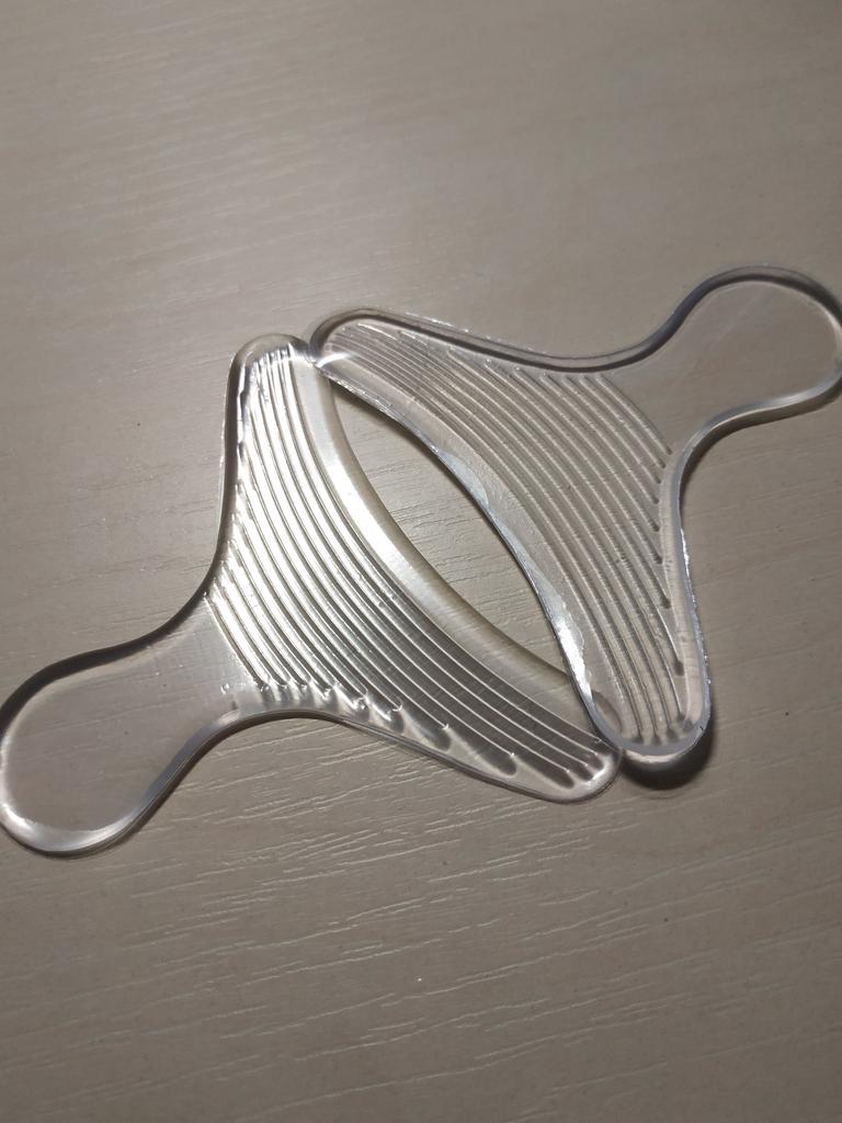 Приобрела силиконовые наклейки для пяток.В тот день,как обула новые кроссовки и до крови натерла ноги,сразу же сделала заказ.Есть у меня силиконовые вкладыши другой формы,но те порой выезжают из обуви,эти же из-за своей Т-образной формы надеюсь будут прочнее держаться.С этой удобной вещицей и пятки целыми будут))
