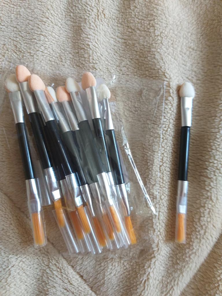 Получила заказ-двусторонние аппликаторы для макияжа, 10 шт. С виду отличные. Кисточка ровная, плотная и приятная для лица, подушечка мягенькая, форма сердечка, удобная для кометики. Использовать можно для глаз, губ и т. д.