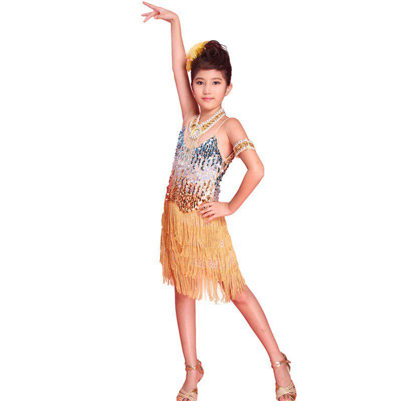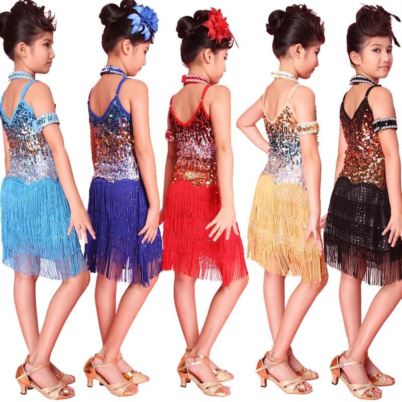 Популярное детское платье для латинских танцев с бахромой для девочек, костюм для латинских танцев танго с блестками, От 6 до 12 лет