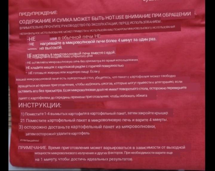 🎀Мешочек для запекания картофеля в микроволновой печи. 🎀Это моя палочка-выручалочка👍❤! Оценила эту штучку по достоинству! Когда нет времени на готовку, да или просто не хочется ничего готовить, этот волшебный мешочек приходит мне на помощь! Закидываю туда пару картофелин, минут на 5 в микроволновку и вуаля👌👌👌, обед готов😄! Картошка получается ,не скажу как на костре, но вкусненькая😋👍! Брала на работу, всем всё понравилось. Так что придётся заказать ещё, чтобы был и дома, и на работе. 🎀Мешочек, довольно, вместительный. По описанию отлично подходит для всех видов картофеля, кукурузы в початках, хлебных изделий и многого другого! 🎀Многоразовое использование, можно стирать в машине, но я пока не пробовала стирать! 🎀Единственное, что меня смущает, это состав, что внутри мешка. На ощупь что-то шуршащие, продавец указывает, что волокна, но какие!?...но это отдельный разговор, надеюсь, что не вредно! Сама ткань полиэстер! В целом, хороший, нужный товар!!!