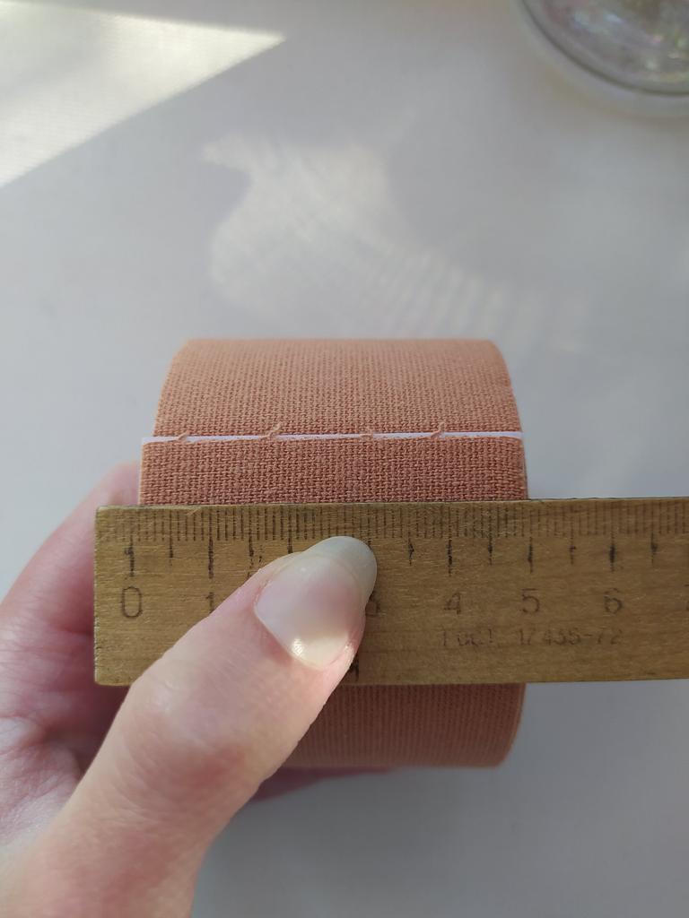 Тейп был упакован в обычный пакет для посылок, без пупырки, так что чей-то нос успел залезть в него и проверить, что внутри. Оттого удивительно, как товар оказался цел, невредим и на вид привлекателен. Тейп приятный на ощупь, разметка на бумажной ленте порадовала отдельно. Ширина ленты, как и заявлено продавцом, 5 сантиметров, по длину пока не знаю, но даже в рулоне заметно, что тейпа много. Применять его пока решимости нет, но когда найдётся - дополню отзыв.
