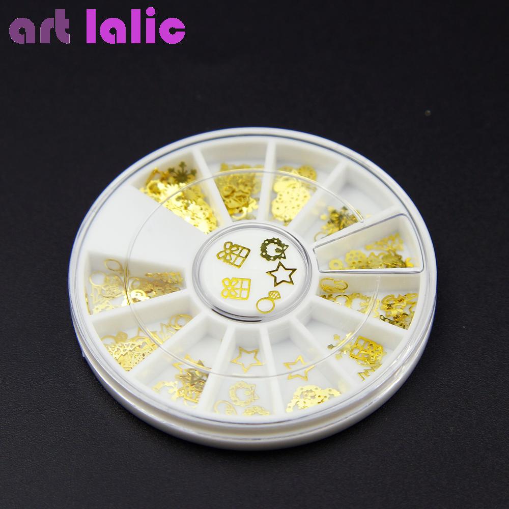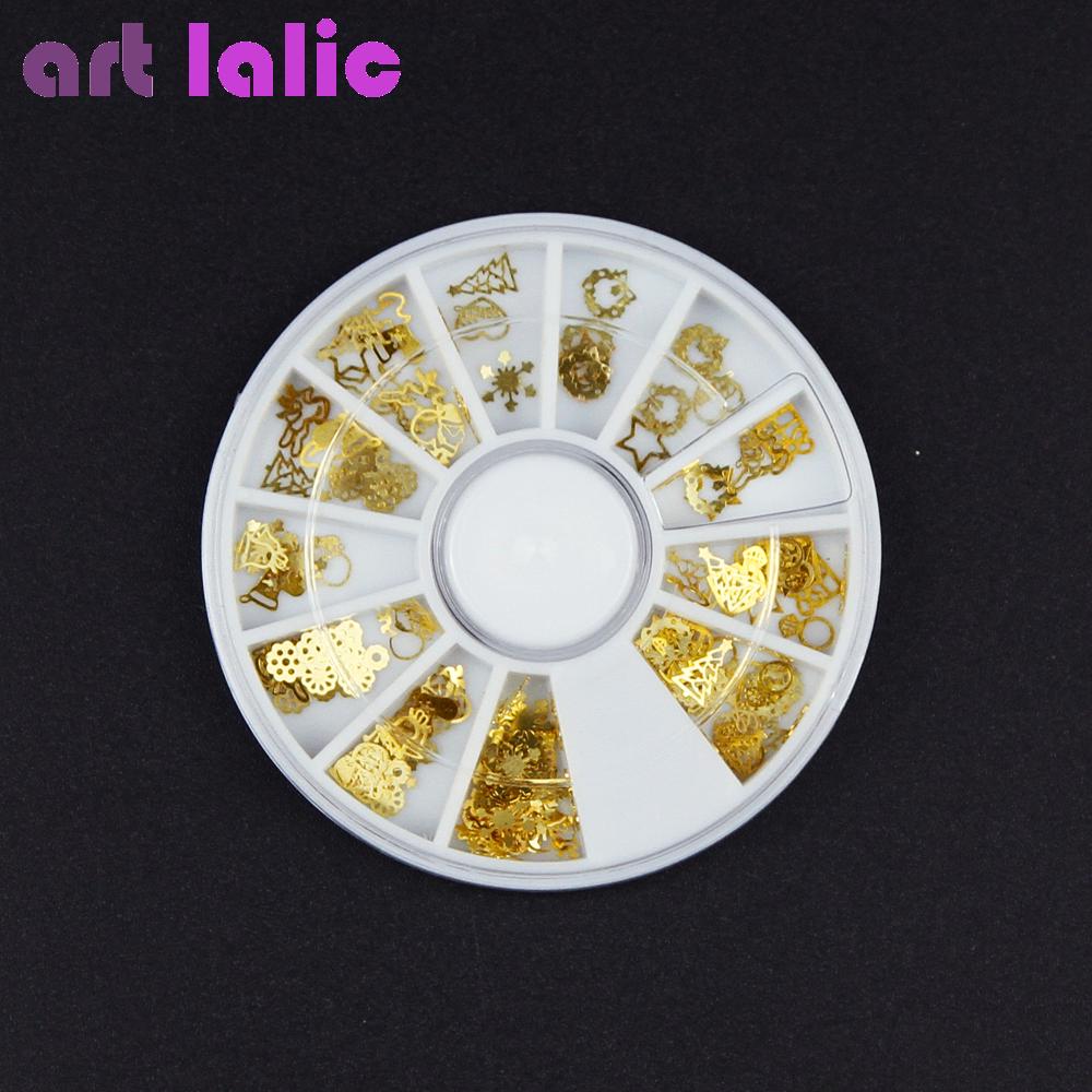 1 колесо полый дизайн ногтей золото металл рождественские украшения звездный венок подарок ломтик бриллианта 3D ювелирные изделия