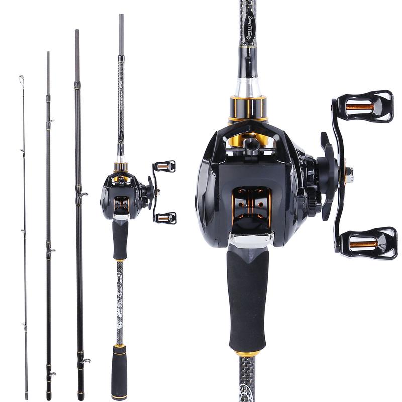 SOUGAYILANG Комбинированные катушки для удочек с 4-секционным удилищем Baitcaster, 12 + 1BB, кастинговая катушка, рыболовный набор