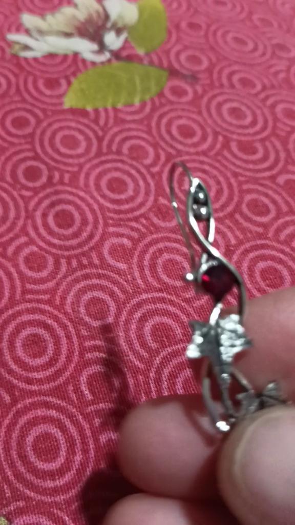 Серьги длинные и зимой неудобно их носить. А летом самое то. Длиной около 6 см. Красный камушек, листик плюща.. Не окисляются. Рекомендую носить с заглушками, но в комплекте они не предусмотрены.