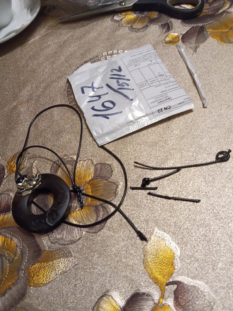 Украшение красивое,но упаковка просто оказалась ловушкой.В пакете с пупырками не возможно нащупать расположение шнурка,только саму подвеску.И вот,отрезая по самому краю пакетика я отрезала сам шнурок.Очень печально.Придётся менять шнурок ....или ремонтировать этот,добавляя чёрные бусины.Продавцу советую подумать о другой упаковке,чтобы не случилось такое у остальных покупателей.