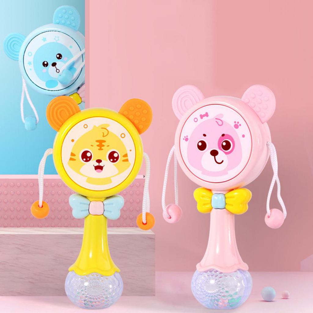 Мультяшный пеллетный барабан, встряхивающая погремушка, детский колокольчик, музыкальный свет, ритм, прорезыватель, игрушка