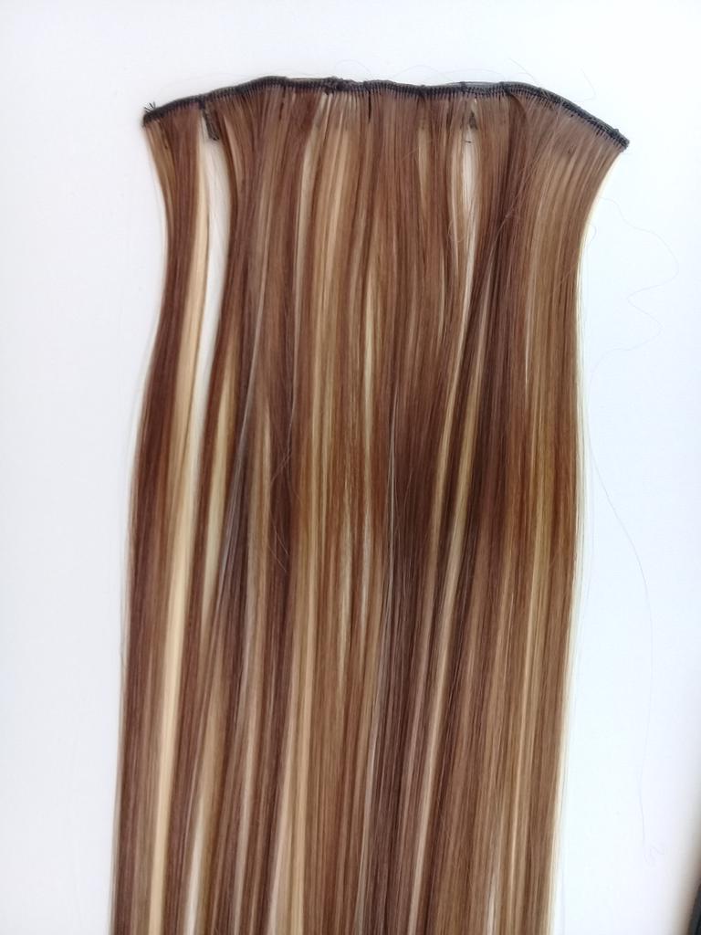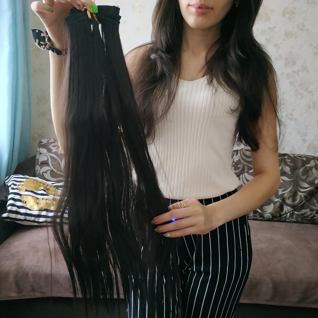 Комплект накладок из искусственных волос. Заказан для знакомого мастера-парикмахера, которую я упоминала в предыдущем обзоре. И это не последний заказ для неё. Скоро выпускные, благодатная пора для мастеров такого профиля. Не каждая девушка имеет терпение отрастить длинные волосы, но на выпускном вечере хочется быть с шикарной прической. 😁 В наборе шесть накладок. Одна - на 4 клипсы, две - на три, три - на две. Клипсы достаточно надёжно крепятся к родным волосам, не доставляют неудобств. Длина волос у всех накладочек одинакова, около 55 см . Цвет видно на фото, эффект окрашенных прядей. Качество хорошее, волос не лезет. Очень похоже на натуральные волосы. Расчесываются легко. Тем, кто работает в сфере красоты, или умеет делать прически на бытовом уровне, товар рекомендую. Качественный! 👍