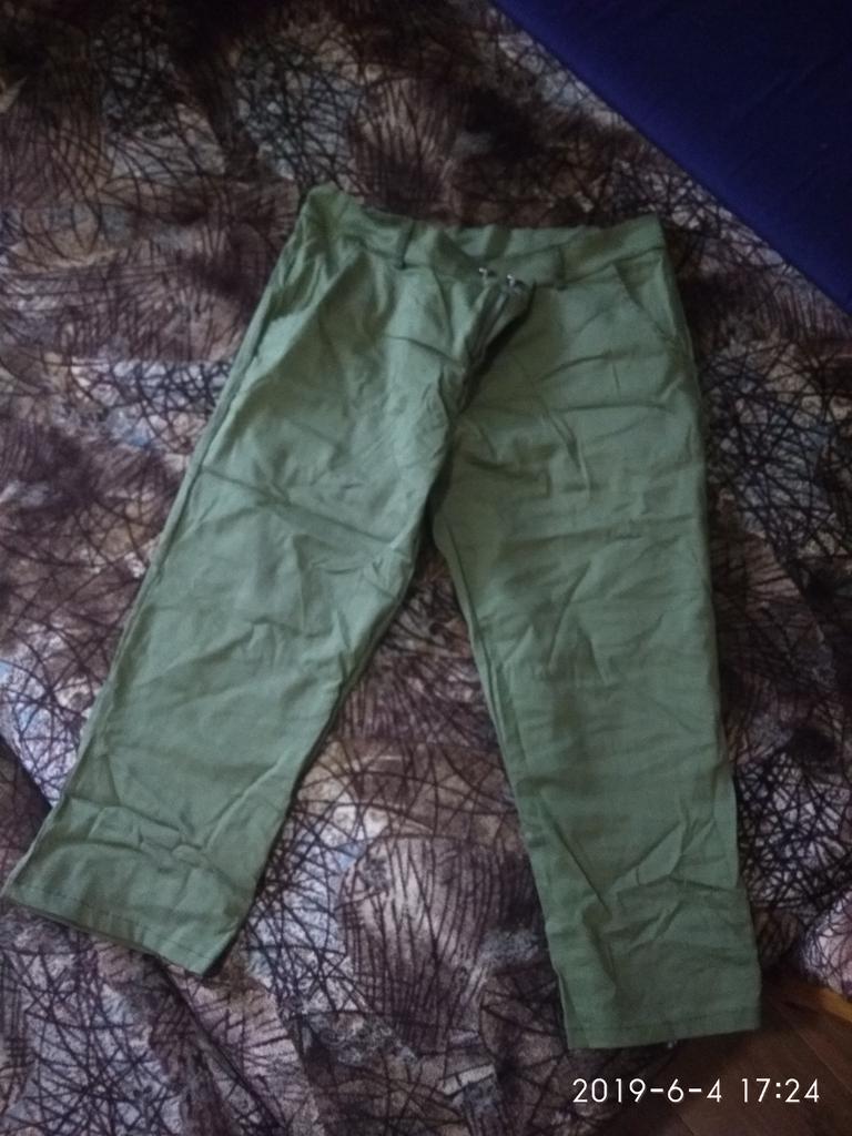 Отличные штанишки за такую цену! Легкие, но не тонюсенькие, то что надо на лето! Не угадала с размером, большие на меня оказались( материал тянется, главное на талии свободненько будут для таких фигур как у меня-попа и бедра на 44-46 размер, а талия на 48 не меньше, что создает проблемы при выборе размера, но даже при таком нестандарте можно смело брать на размер меньше! В общем советую! Кстати посылка пришла на удивление очень быстро! Этот товар не для молоденьких девушек конечно, а для возраста гораздо старше и не для выгула по местному "бродвею" , цена - качество соответствуют