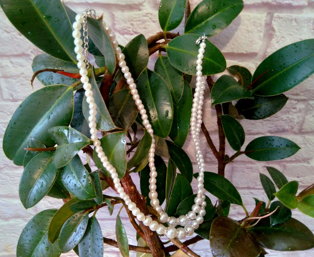 Красивые бусики.Покупала за 193 руб. Мне вообще нравится всё под жемчуг. Я одела их на шею просто на замочек, не используя ещё цепочку, с ней бусы ещё длиннее. В середине жемчужины крупнее, к краям меньше. Доставка 43 дня до Челябинской области, но Джум, извиняясь за долгую доставку, дал пяти процентную скидку на следующий товар. Спасибо. Рекомендую к покупке. Привет всем, кто пользуется услугами Джум.