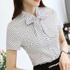 SURWENYUE, летняя модная офисная женская рубашка, женская блузка с короткими рукавами и бантом на шею, волнистые женские топы — купить товар онлайн с бесплатной доставкой по всему миру!