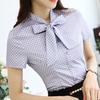 SURWENYUE, летняя модная офисная женская рубашка, женская блузка с короткими рукавами и бантом на шею, волнистые женские топы