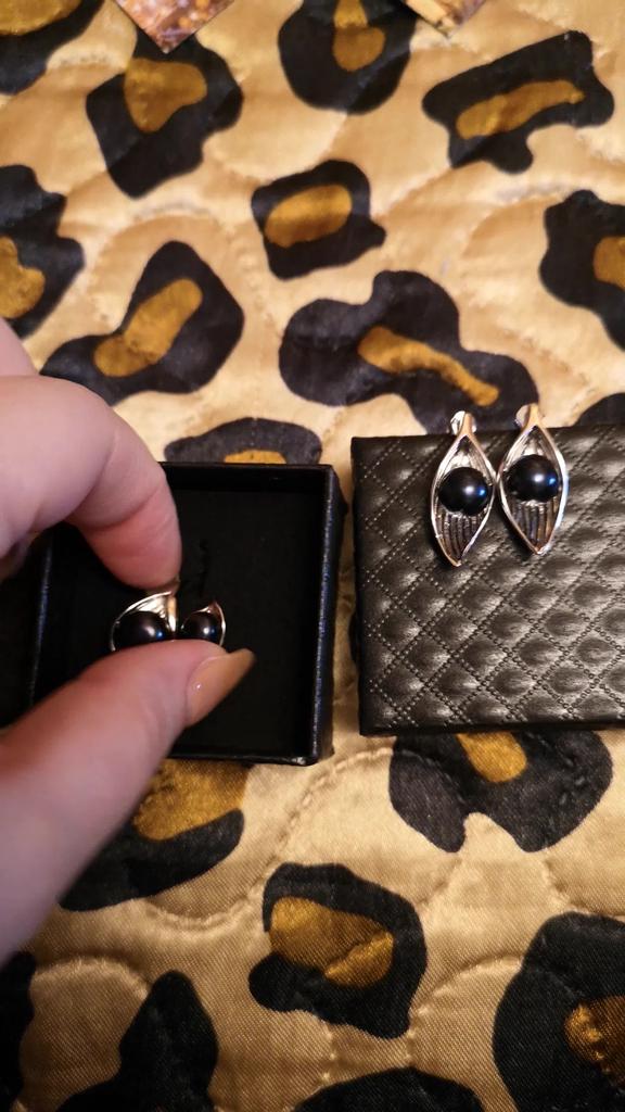 Красивые пуссеты, брала в комплект к колечку. Чуть другой оттенок. Пришли красиво упакованные в коробочку,в одном пакете с колечко.