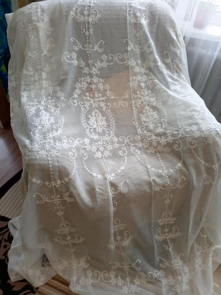 Пришла посылка. Зановеска целая, повреждений никаких нет. Дифекты отсутствуют. Только жаль не на всю гардину, было бы на мой взгляд лучше и смотрелась? Но мать сказала такого размера даже лучше какой нам пришёл. Она осталась очень давольна. Отметила и качество и дизайн и цвет. Всё абсолютно её устроило. Была просто в восторге. А ещё я добавила по бокам зановески тюли голубого небесного цвета и подвезала шнурочками которые прислали вместе с этой белой занавеской. Их как раз было две. На этом всё, всем пока за товар большое спасибо. Рекомендую!