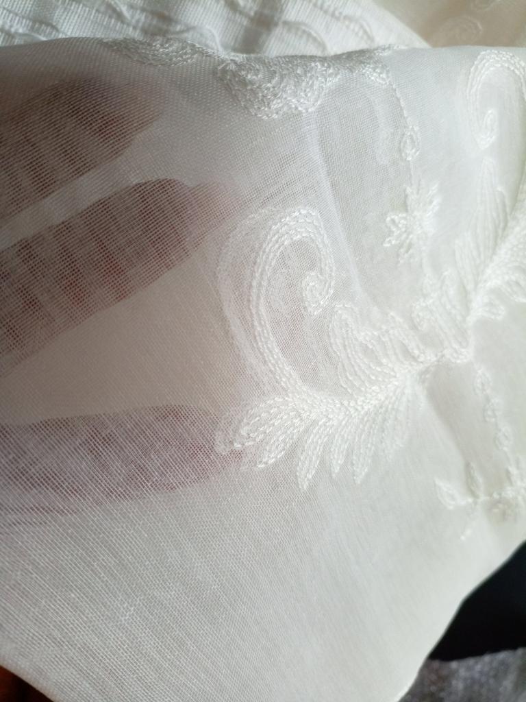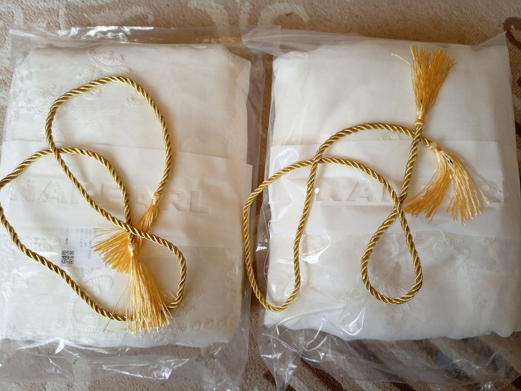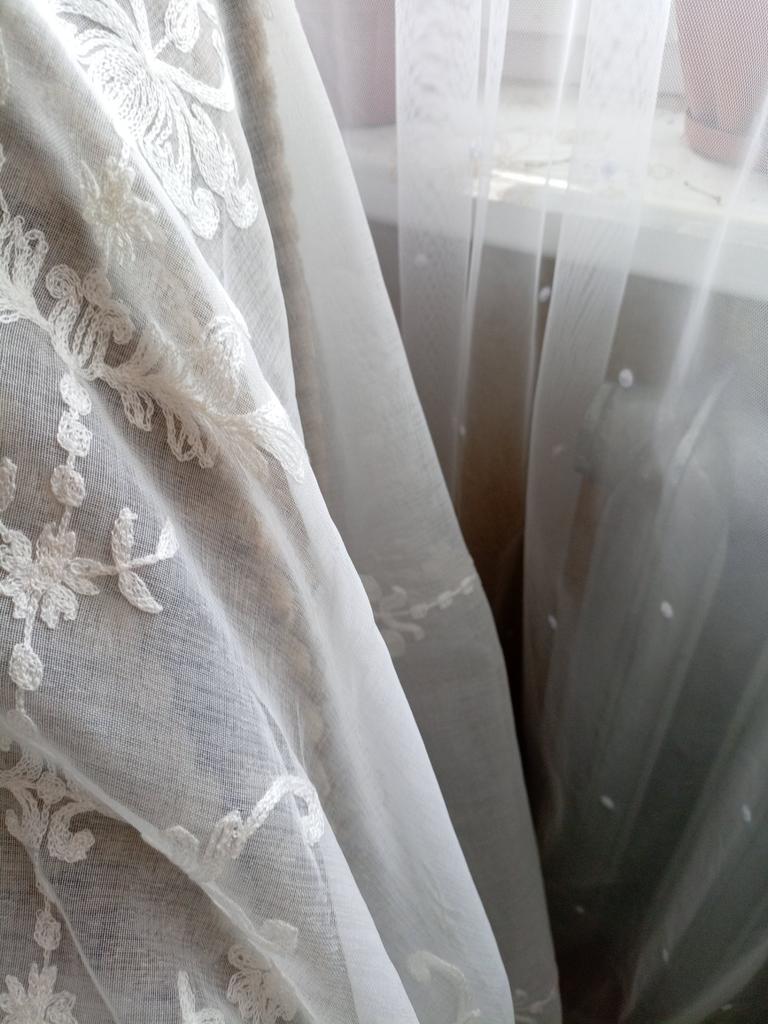 Получила шторы, чуть позже. Очень их ждала. Довольна более чем. Очень понравились. Шторы в пакетах с обозначениями..,, положили два золотистых шнурочка, спасибо за приятность, может быть пригодятся. Ткань похожа на лен. Вышивка аккуратная. Края просто прострочены, аккуратно. По цвету не чисто белые , как кремовые или Шампань. На одном из фото видно в сравнении с теми шторами что висят на окне. Там тюль сетка белоснежная .Шторы поглажу и буду вешать. Очень хочется посмотреть как будет выглядеть на окнах.Спасибо за такую красоту. Размеры соответствуют.Шторы повесила, мне очень нравиться, красиво. Добавила Фото.