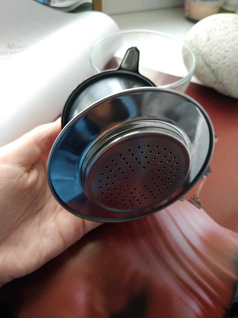 Получила ситечко для кофе. Само ситечко понравилось. Размерчик тоже подошел.Сегодня проводила ,,испытание,,)) Моя кофемолка дробит кофе не однородно, от пудры до средней фракции. Пудра естественно проходит через отверстия ситечка, (мне это не мешает), но проходит и часть покрупнее. Ну..тут я вышла из положения, вырезав из старого сита кружочек по диаметру донышка, и уложила его под съемное верхнее. Другое дело ,что вода быстро проходит через кофе, а хотелось бы помедленнее. Или хотя бы донная часть поглубже заходила в чашку. Да.., а крышечку можно использовать, как подставку под чашку)) . .Спасибо.