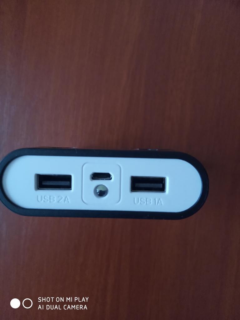 Штука рабочая. Батареи заряжает и работает, как повербанк. Два гнезда для зарядки девайсов. Хоть и написано выход тока разной мощности 1а и 2а, но при зарядке телефона выход примерно одинаковый около 460ma. Зачем две кнопки на корпусе так и непонял. При нажатии любой из них показывает оставшийся заряд в процентах.(0;25;50;75;100). Светодиодом пользоваться как фонариком не получается. Будет ли заряжать телефон при использовании?? Т.к. телефон при нагрузке потребляет примерно 600 ma.