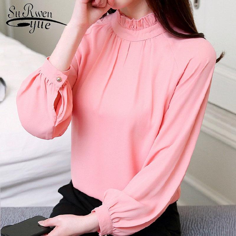 SURWENYUE модная шифоновая блузка с длинными рукавами, женская рубашка, женские блузки, женские топы, розовая блузка OL