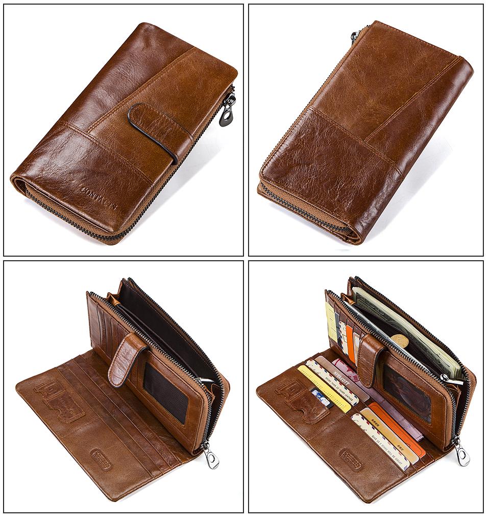 CONTACT'S мужской удлинённый бумажник из натуральной кожи с отделениями для пластиковых карт и монет