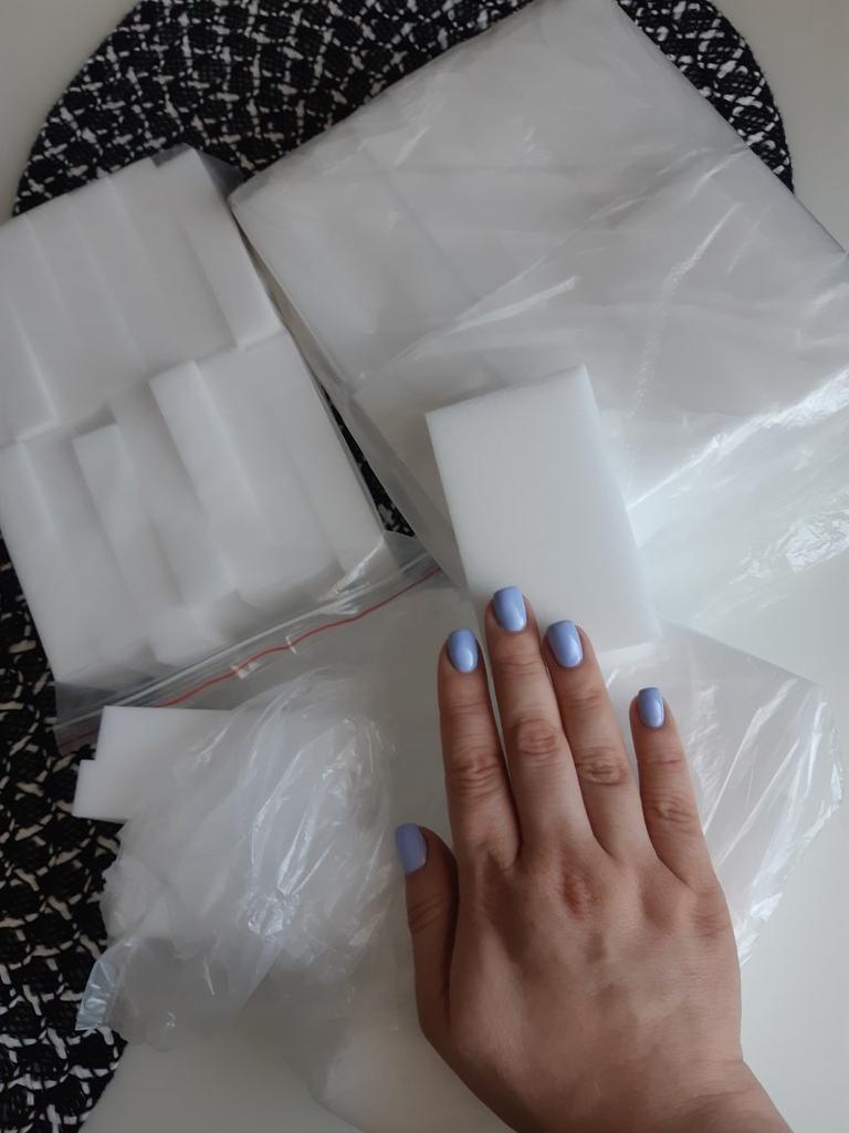 Набор меламиновых губок 🧽🚽🛁 Количество: 100 штук Губка работает как ластик, истончается, стирая многие трудновыводимые загрязнения. Покупала уже набор из 20 штук, хватило примерно на полгода. Делюсь своими выводами после использования👌 〰️ Губку использовать лучше в намоченном виде, так губка меньше крошится 〰️ Не чистить посуду и другую кухонную утварь губкой. Исключение - металлические кастрюли снаружи. Ведь частички губки могут остаться на посуде и попасть в организм. А меланин, как ходят слухи, совсем не безобидный материал, и при внутреннем использовании токсичен. 〰️Пользоваться губкой лучше в перчатках, так как она работает наподобие наждачной бумаги, мелкие частицы повреждают кожу. Не берите с меня пример, берегите руки 👌 Как она мне помогает: ✔️ Меламиновая губка просто идеально удаляет весь жир и копоть с посуды. Не царапая её. А также с плиты и других поверхностей. ✔️ Прекрасно очищает белую обувь, в особенности подошву ✔️ Удаляет застарелые пятна от маркеров и фломастеров. Мягкую мебель, к сожалению, от фломастеров не смогла очистить ✔️Незаменима при уборке в ванной, оттирает на ура пятна на кафеле, ванну, душевую кабину, унитаз и т.д. ✔️Также борется с загрязнениями на линолеуме, моющихся обоях, подоконниках. Применений можно найти массу. Преимущества таких губок: отсутствие запаха, универсальность и скорость работы. Мне кажется, меламиновая губка в доме - вещь очень полезная, хоть и не всесильная. Доставка 1 месяц до Калининграда с полным отслеживанием 🚙✈️ Всё-таки другие химические средства для уборки тоже не безобидны. Пользоваться губками буду, и вам рекомендую ✌️