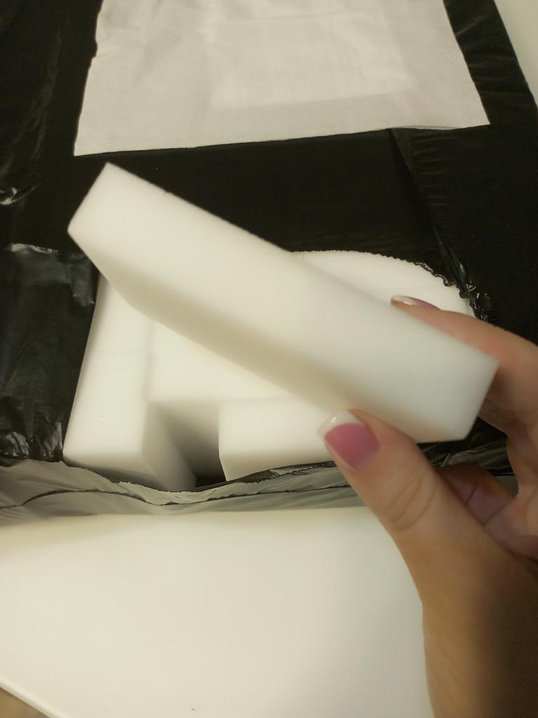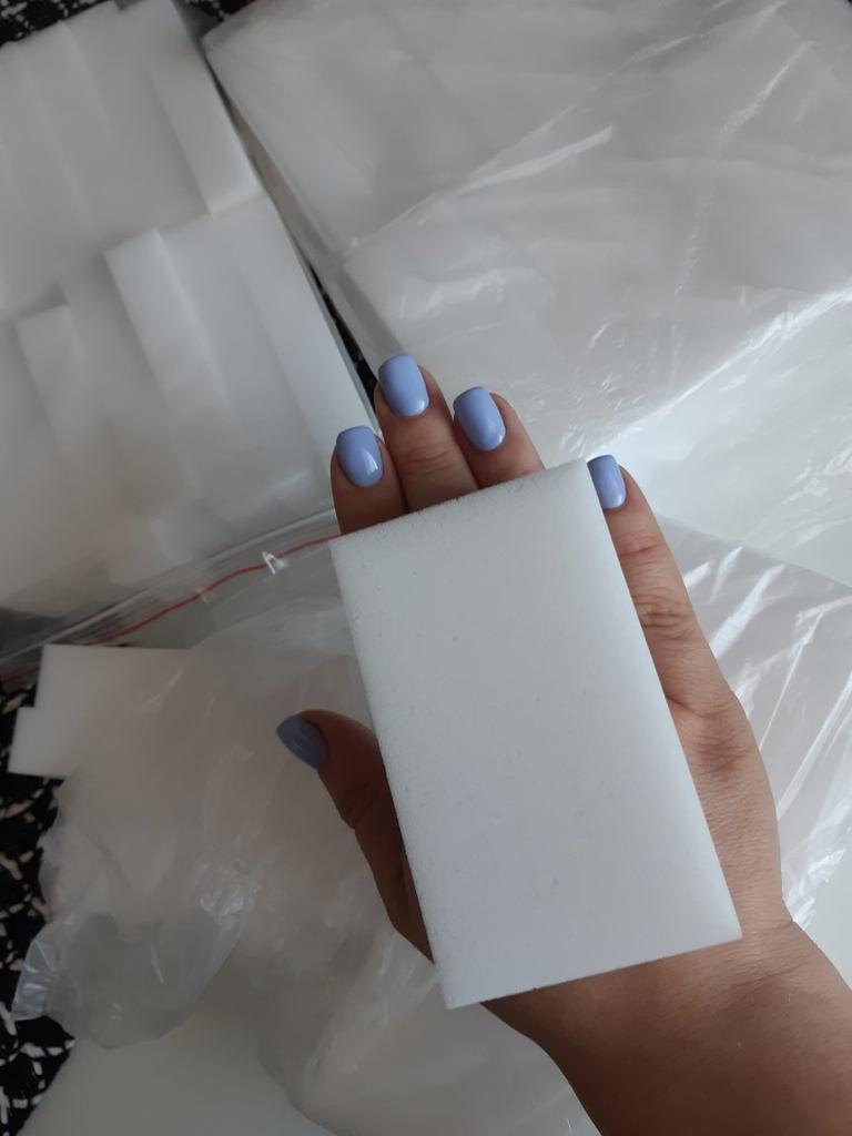 Всем доброго времени суток. Получила свой заказ комплектной посылкой на почте. Товар полностью соответствует описанию. Теперь подробнее о заказе. 👍 Плюсы: 🌟 Первый и самый важный плюс - это цена. При покупке оптом получается гараздо дешевле чем в Киеве. 🌟 Широкая область применения, конкретнее приведу примеры на чем использовала я: - восковый карандаш - с мебели удалили легко. С обоев, зависит от вида, с одних удалила на отлично, на других на четверочку🤗 - шариковая ручка (ну что поделать если у меня в доме есть юный художник) - с линолеума на четверку, с обоев никак. - перманентный маркер - линолеум, дверь отмыла на четвёрку, с обоев не открывается не надейтесь 🤭 - холодильник, плита, тумбочки на кухне и прочую мебель, металлопластиковые оконные рамы отмывает на ура, но желательно после нее протереть насухо тряпкой. - ванна, унитаз, краны отмываются неплохо но не без усилий, зато без химии ☝️. Кстати налет с кранов тоже неплохо снимает где-то на четверочку😉 - подошва обуви отмывается на отлично и можно забыть про зубную щётку для обуви😄 - чистила серебряные украшения и довольна😎 И это наверное не все области применения 😉 НЕ ИСПОЛЬЗУЙТЕ ДЛЯ МЫТЬЯ ПОСУДЫ!!! 🌟 Как уже писала выше, не требует использования моющих средств, достаточно намочить в теплой воде и мыть. 🌟 Я пользуюсь без перчаток и кожа рук не страдает! Единственный минус это большой расход. На одну уборку уйдет не одна губка🥺. Поэтому лучше брать оптом. Однозначно рекомендую и товар и продавца! У меня все! Кому пригодился отзыв, ставьте лайк и подписывайтесь. Всем удачных покупок на JOOM.