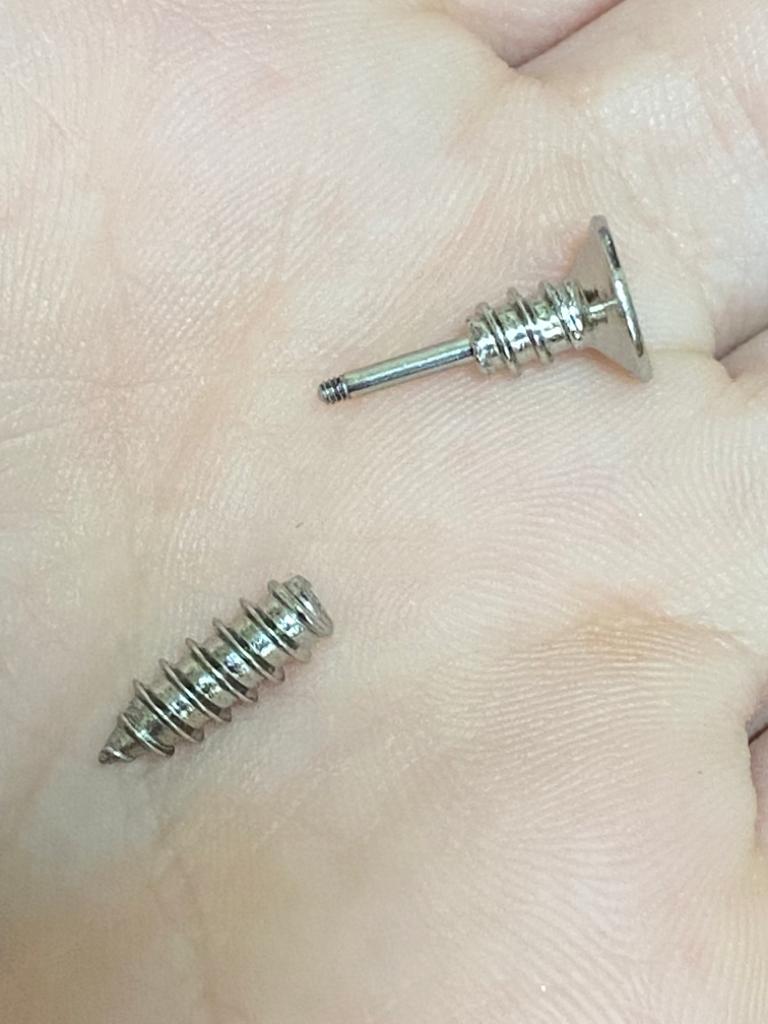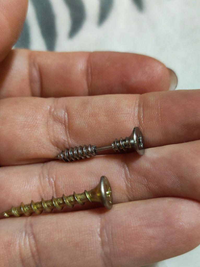 Сережка в виде самореза Почему пишу в единственном числе, потому что продавец продает их по одной штуке и если Вы хотите полноценные серёжки, то нужно заказывать сразу 2 штуки 😉 Я не дочитала это в описании и получила одну серёжку 😂 Ну и ладно, закажу ещё одну... Что могу сказать, саморез очень похож на настоящий. Откручивается с двух сторон, как снизу, так и сверху. Смотрится конечно неоднозначно, но необычно это точно! 😁 Мне в общем нравится, только теперь надо срочно вторую серёжку заказывать😌 Шёл ко мне заказ 35 дней. Упакована была в малюсенький ЗИП пакет. Всем хорошего настроения и отличных покупок 🛍️