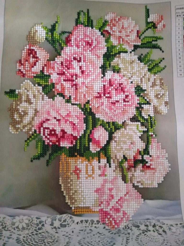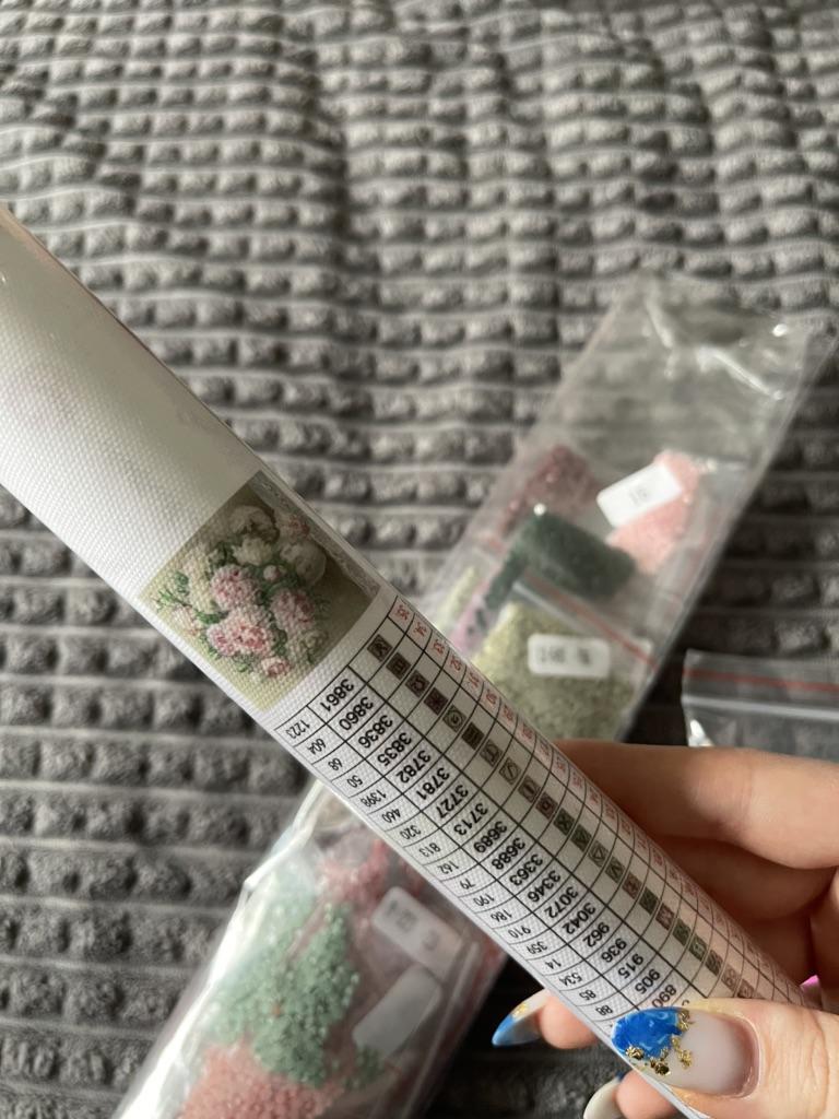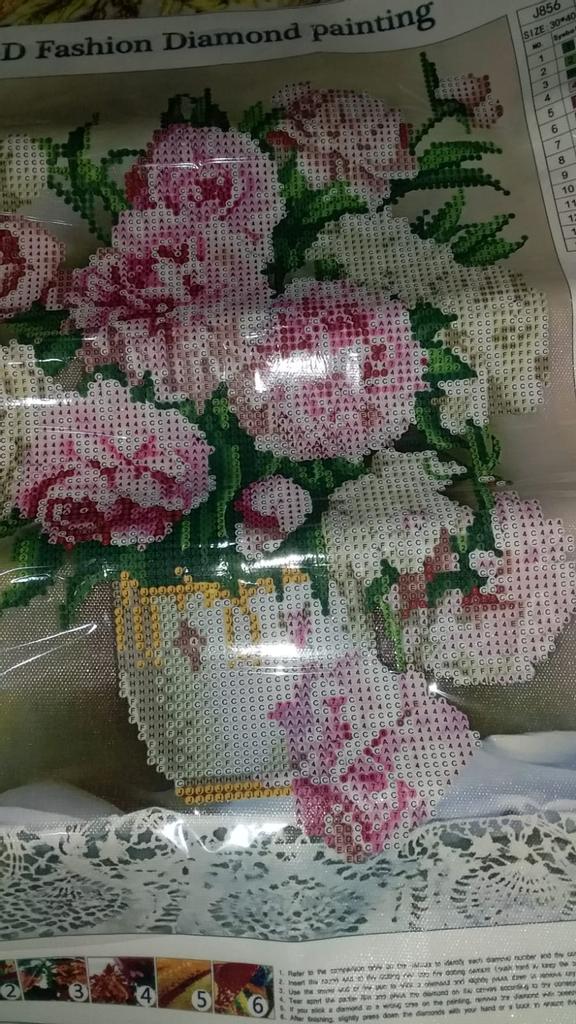 Алмазная мозаика 🧩 Доставка заняла 18 дней, принес курьер прямо домой. Упаковано хорошо,сама мозаика свернута как в тубус. В набор идет сама картина,ручка,бусинки,подставка для бусинок,пинцет и такая штучка чтобы было легче цеплять бусинки(красная на фото) Выкладка полная, 30 на 40 см. Люблю пионы и поэтому заказала именно такую картину,впишется в любой интерьер. Как только закончу ее - дополню отзыв. Считаю такую картину прекрасным подарком как для близких,так и для себя) Спасибо продавцу ☺️ Рекомендую!❤️