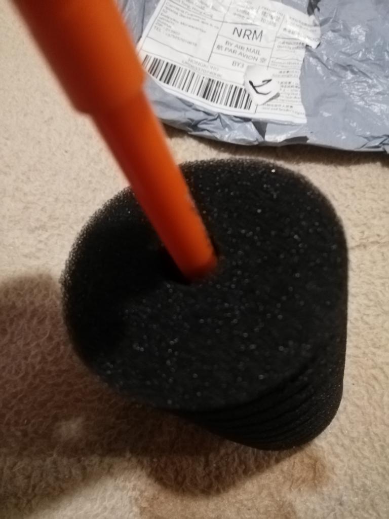 Губка норм, можно пользоваться, не пахнет. Дополняю, губка отличная весь мусор собирается между кольцами, креветки полюбили это место так как корм туда попадает и им есть чем полакомиться, они свободно туда лезут и их рыбки там не достают.