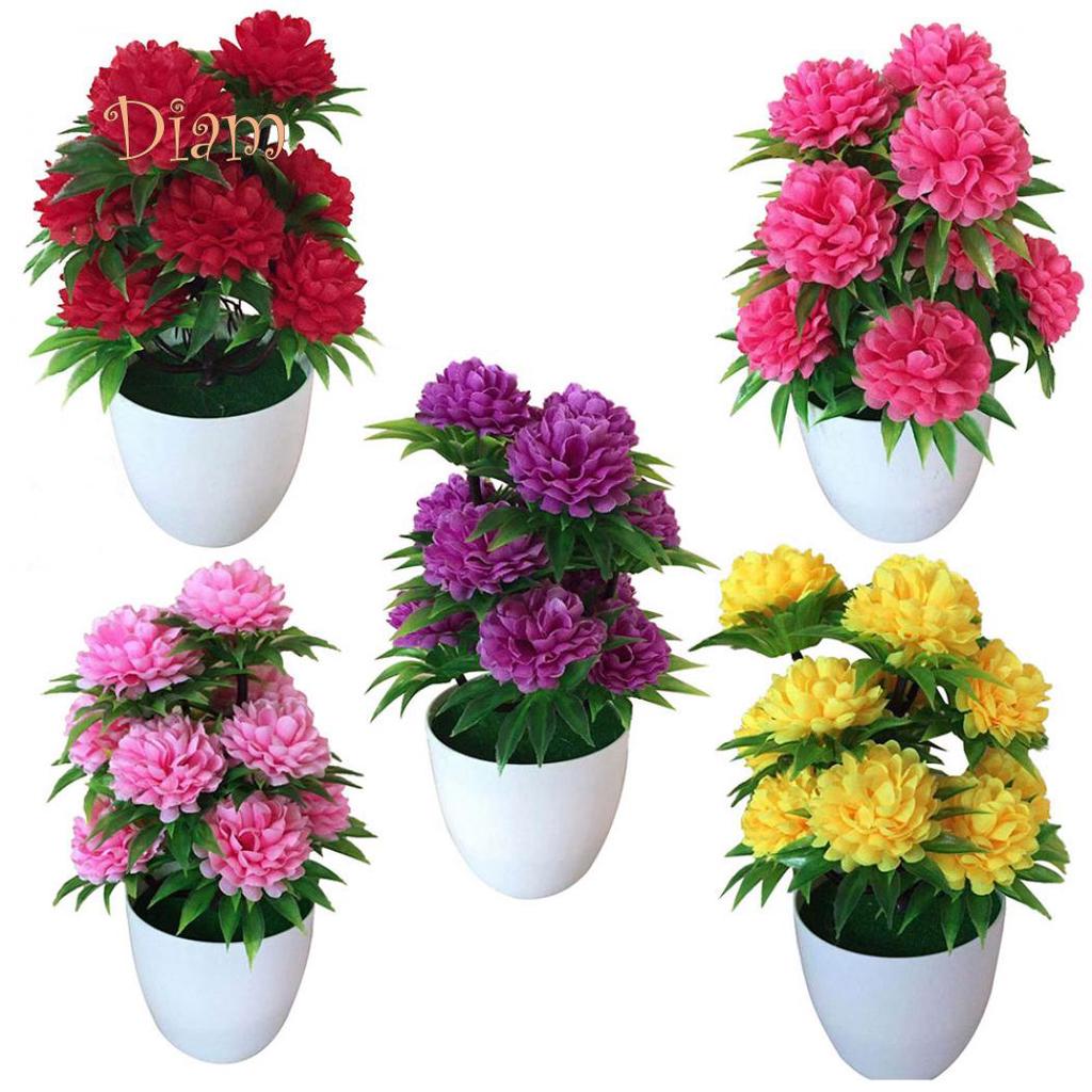 Яркое искусственное растение бонсай из хризантемы в белом горшке для домашнего декора