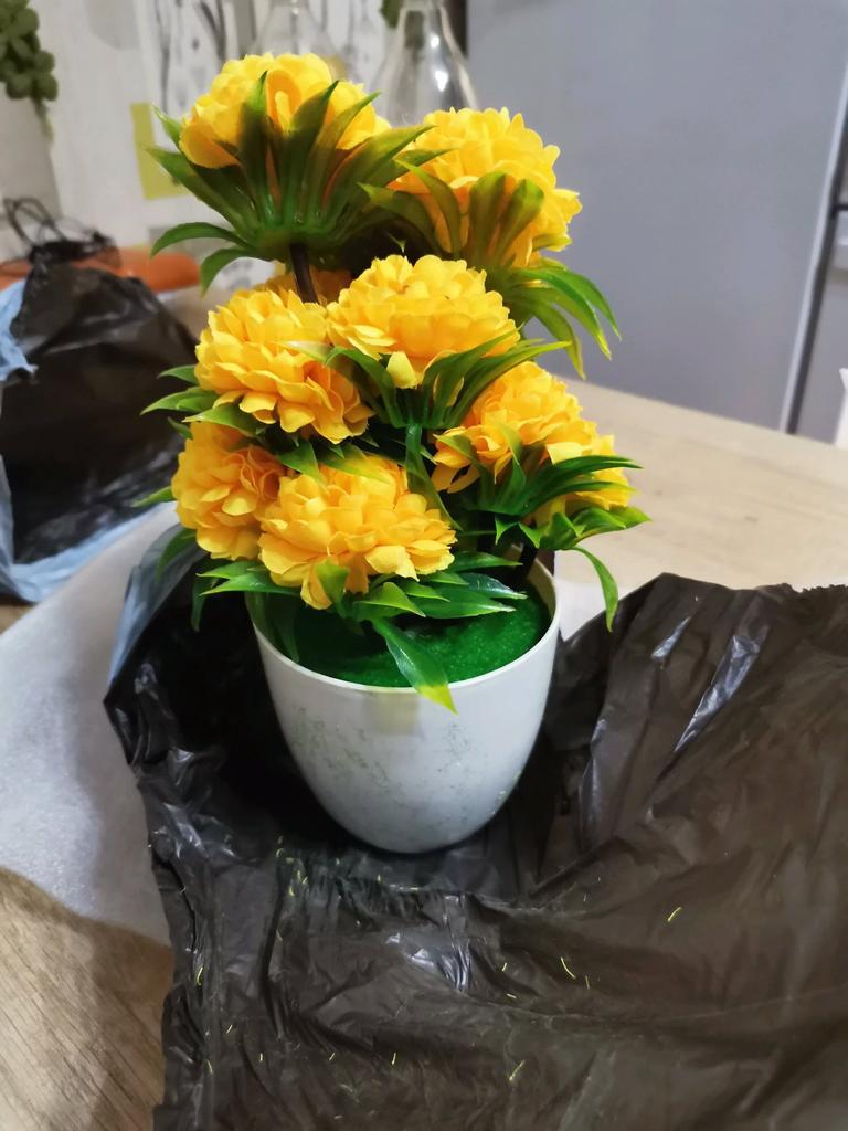 Посылка шла не долго, товар хорошо упакован, цветы просто прелесть, я заказывала себе жёлтые, кто занимается декором и любит украшать свою спальню или гостиную, кухню рекомендую, цветочки просто чудесные и радуют глаз, буду ещё заказывать. Спасибо продавцу и Джуму конечно.
